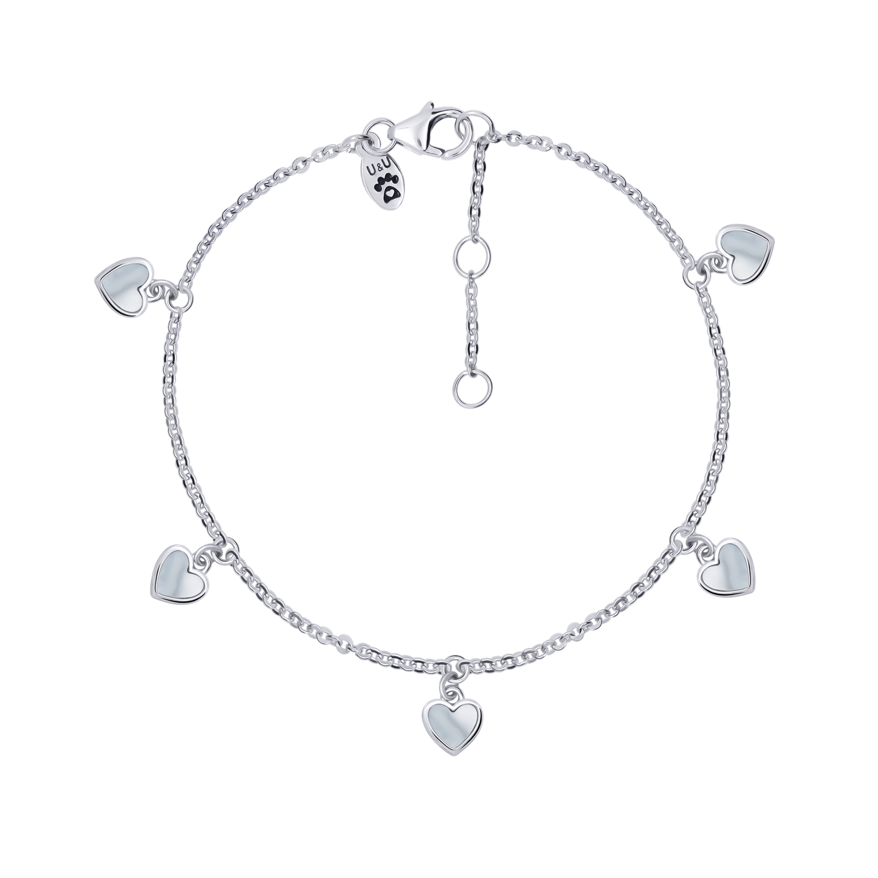 Браслет на ланцюжку Серце мале з підвісами з перламутром – яскравий дитячий браслет з регулюванням розміру, який подарує настрій і нагадає про вашу любов!