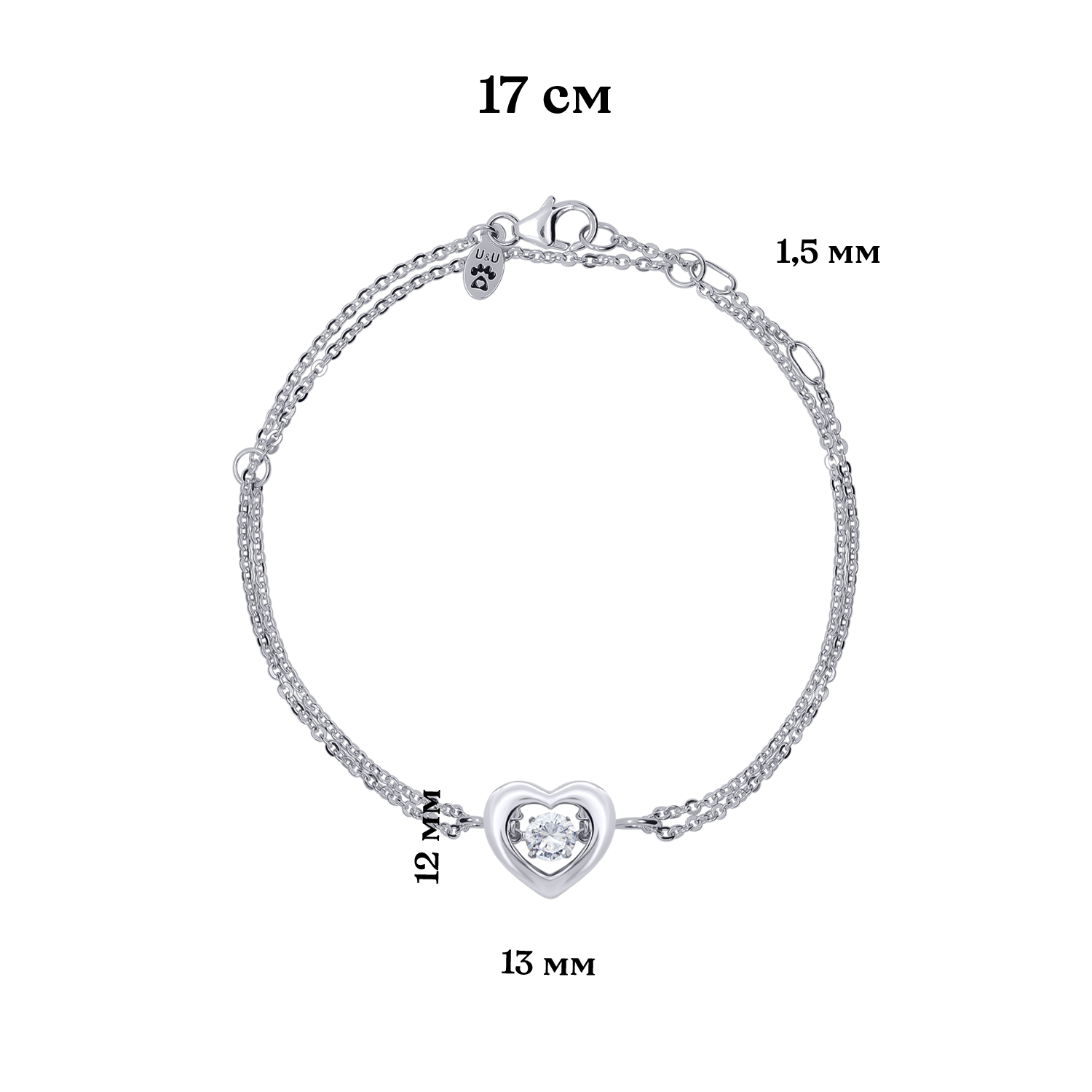 Браслет на ланцюжку Серце велике з танцюючим каменем