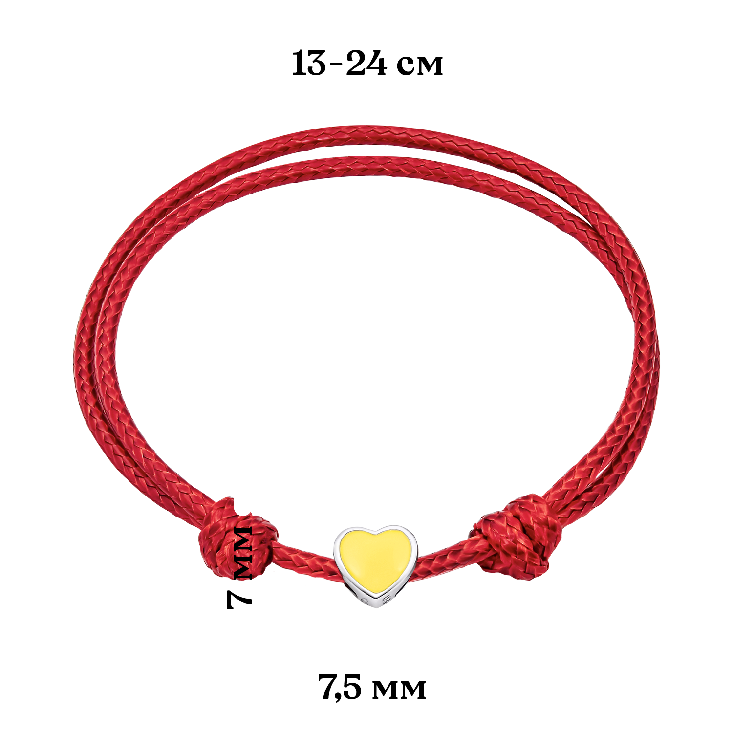 Браслет на шнурку Україна з серцем із жовтою емаллю – яскравий дитячий браслет з регулюванням розміру, який подарує настрій і нагадає про вашу любов!