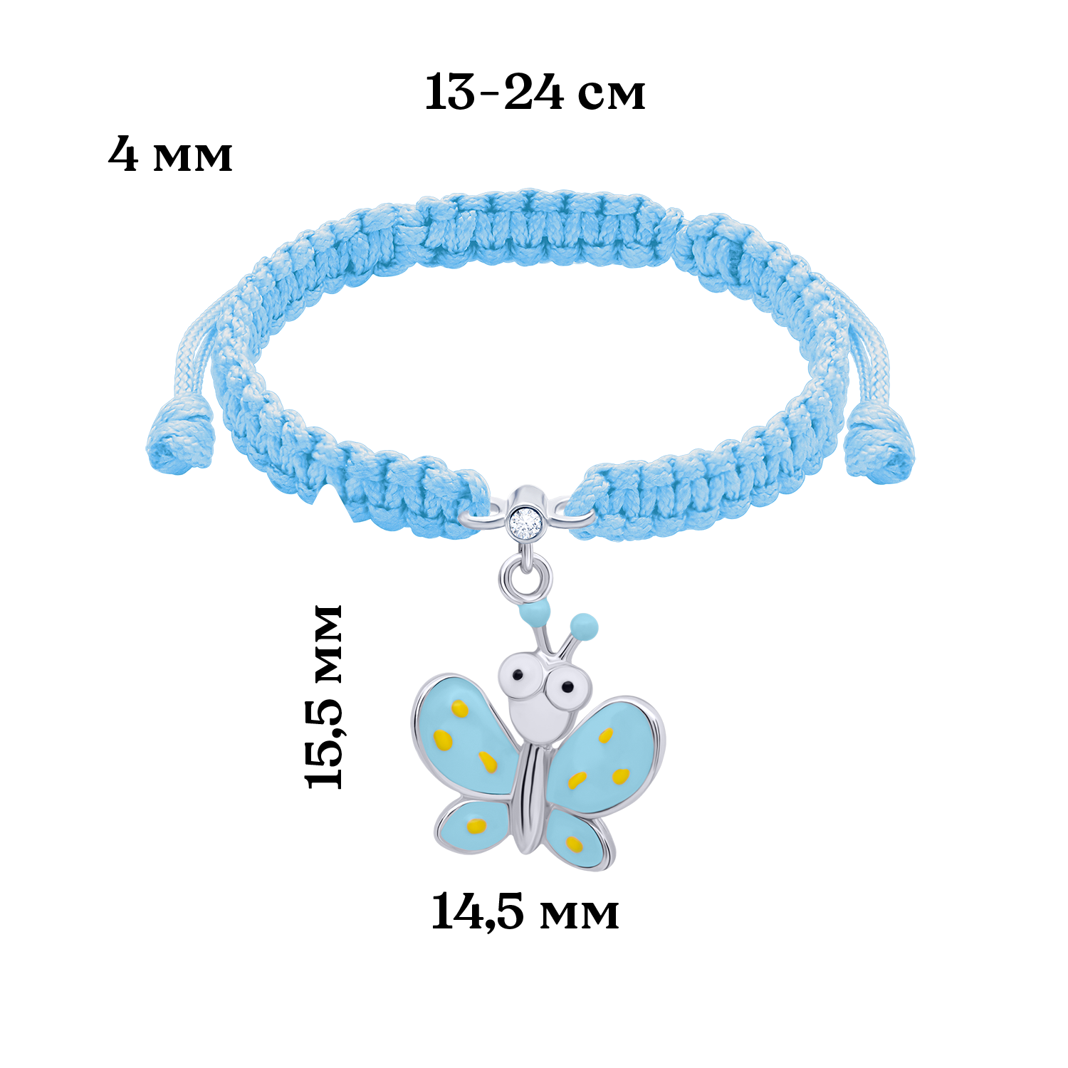 Браслет плетений Метелик з очима блакитний – яскравий дитячий браслет з регулюванням розміру, який подарує настрій і нагадає про вашу любов!