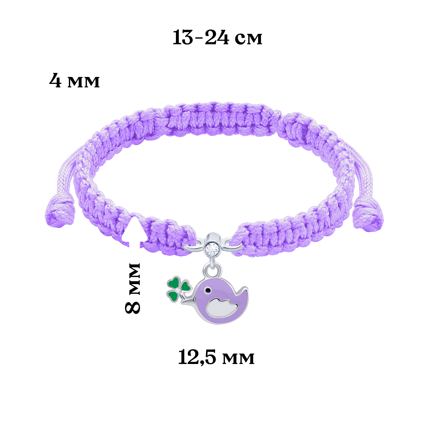 Браслет плетений Пташка фіолетова – яскравий дитячий браслет з регулюванням розміру, який подарує настрій і нагадає про вашу любов!