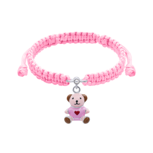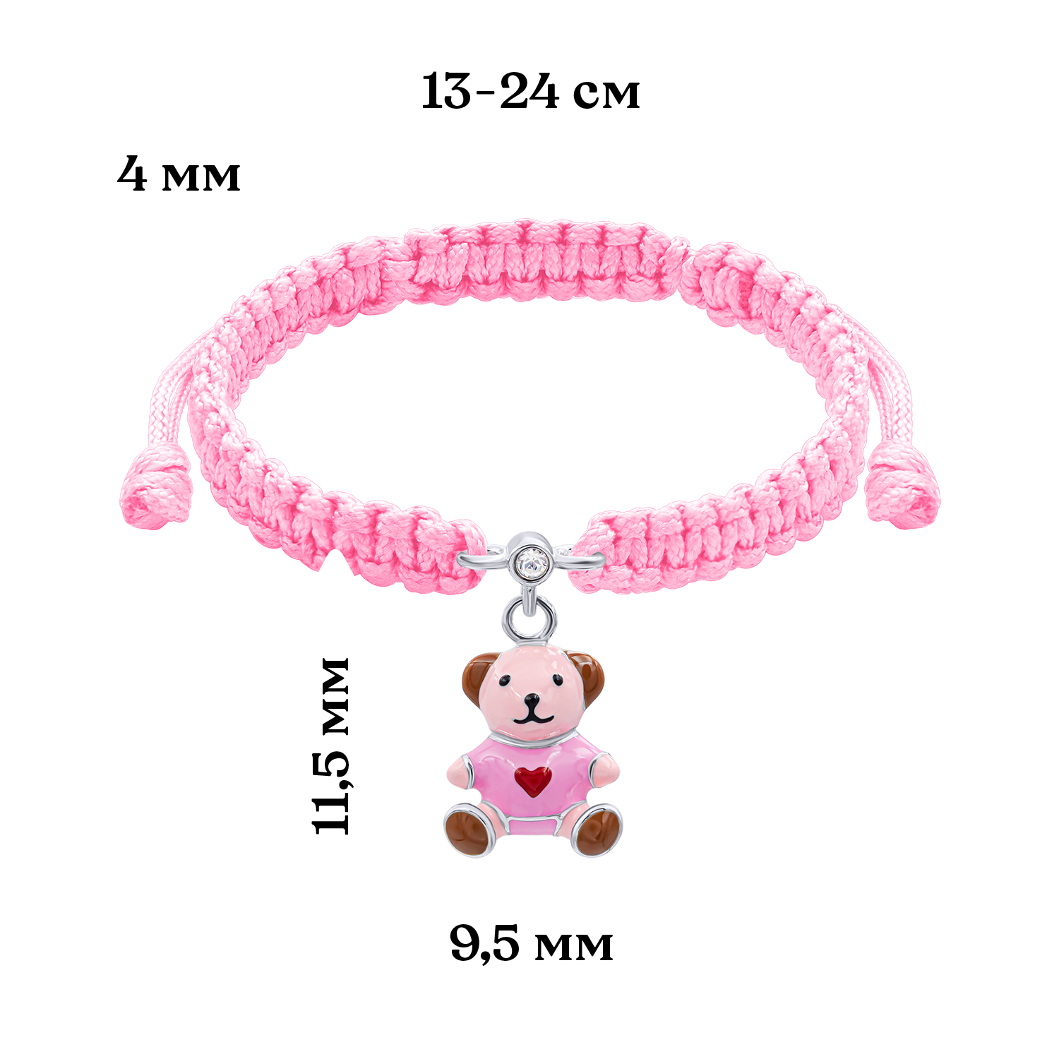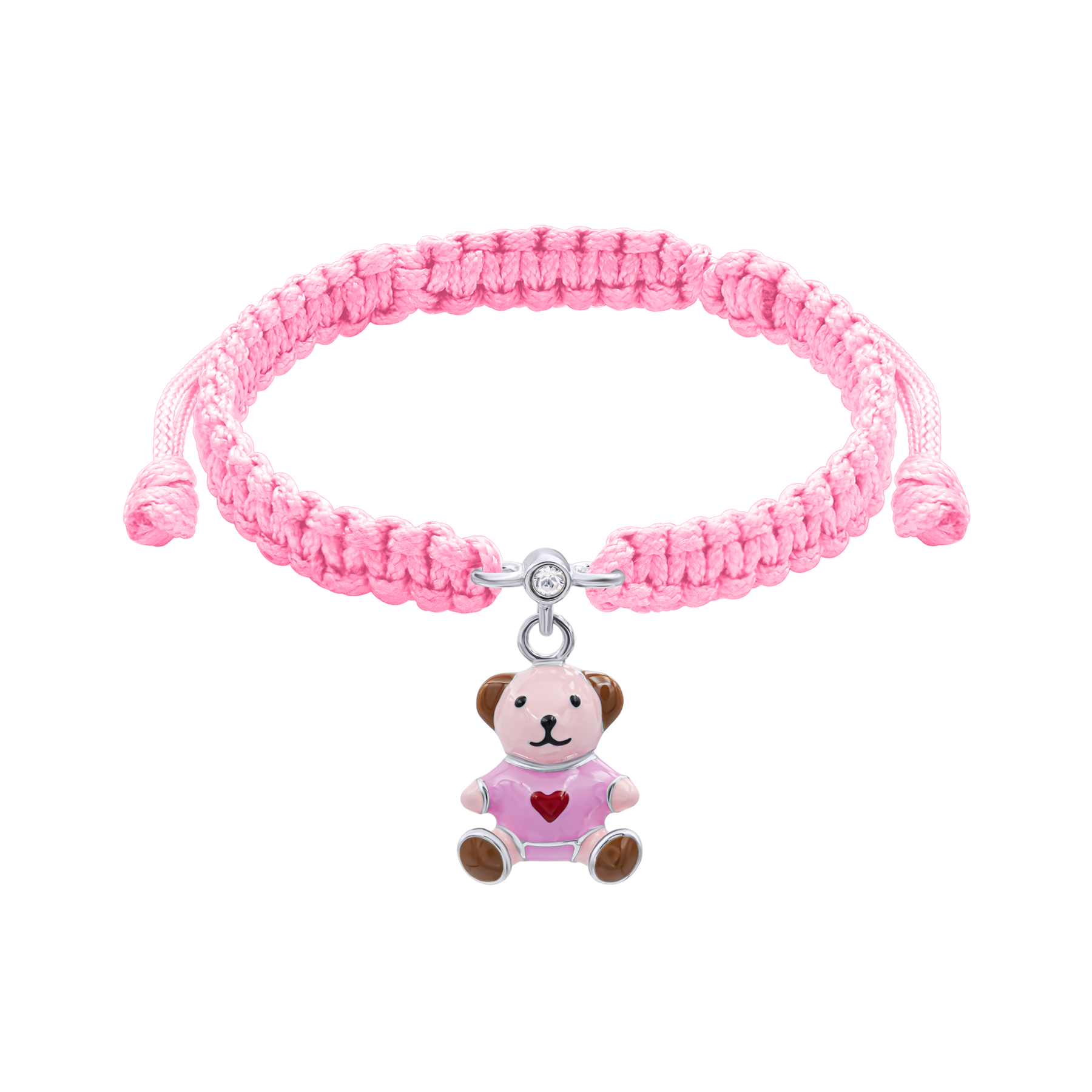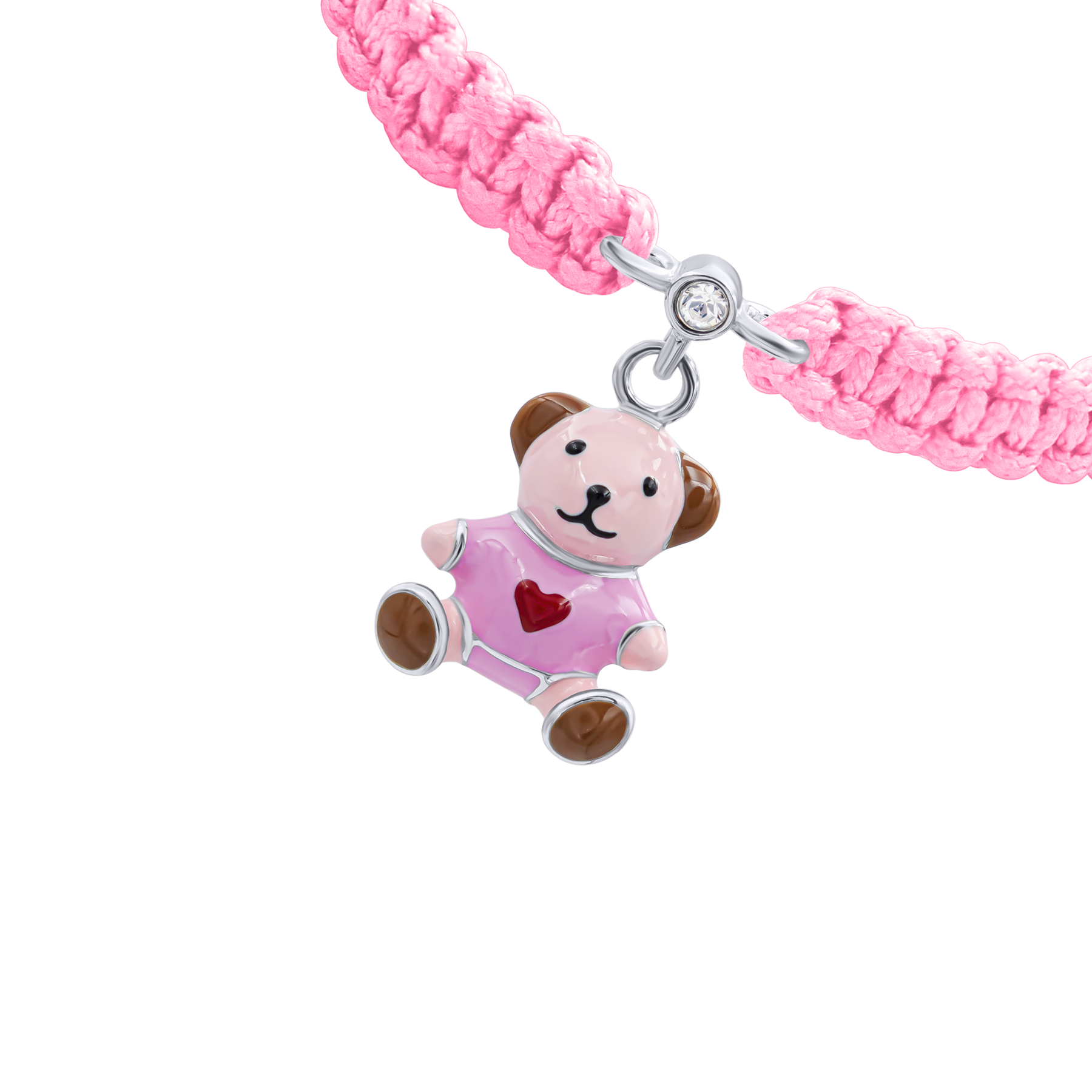 Браслет плетений Ведмедик з серцем рожевий – яскравий дитячий браслет з регулюванням розміру, який подарує настрій і нагадає про вашу любов!