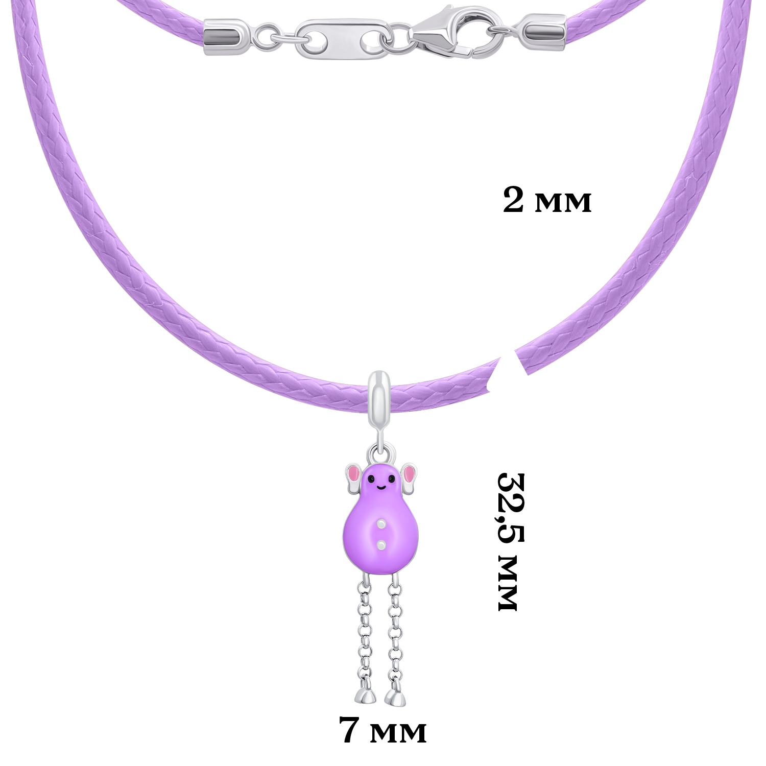 Кольє на шнурку LIL вухоніг з фіолетовою емаллю