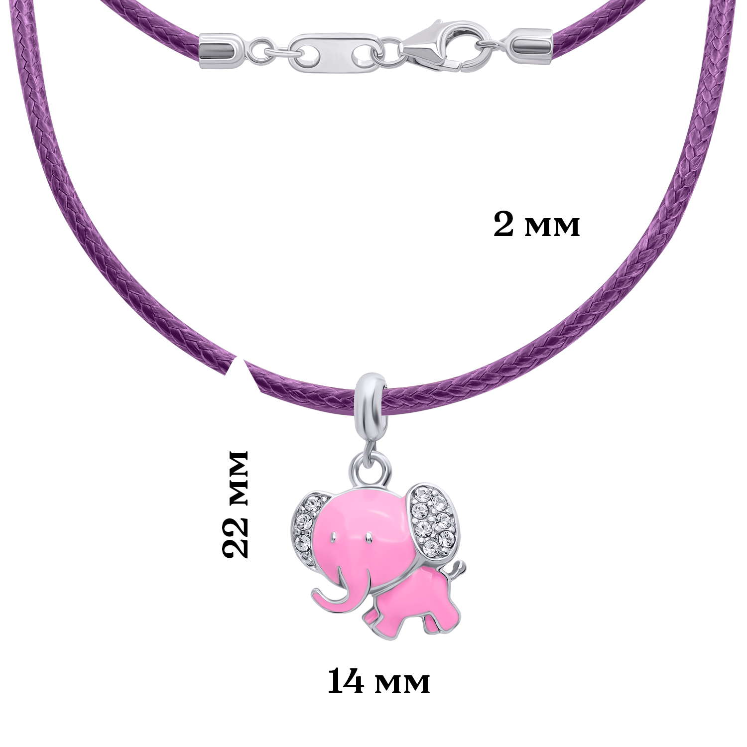 Кольє на шнурку Слон з рожевою емаллю та фіанітами