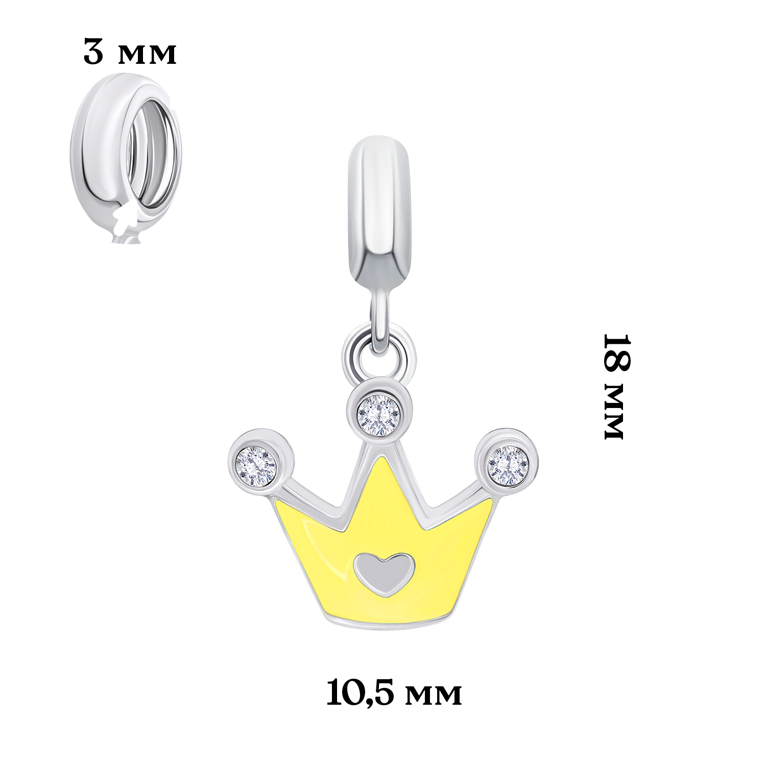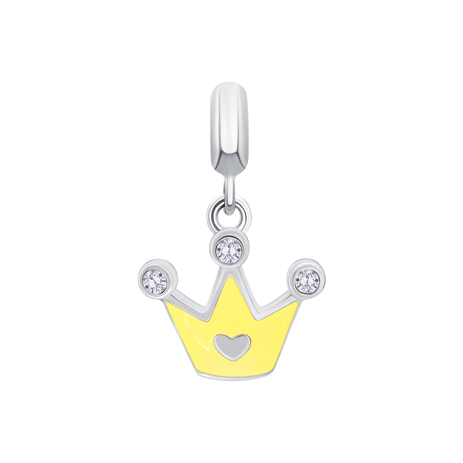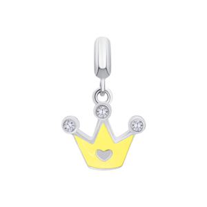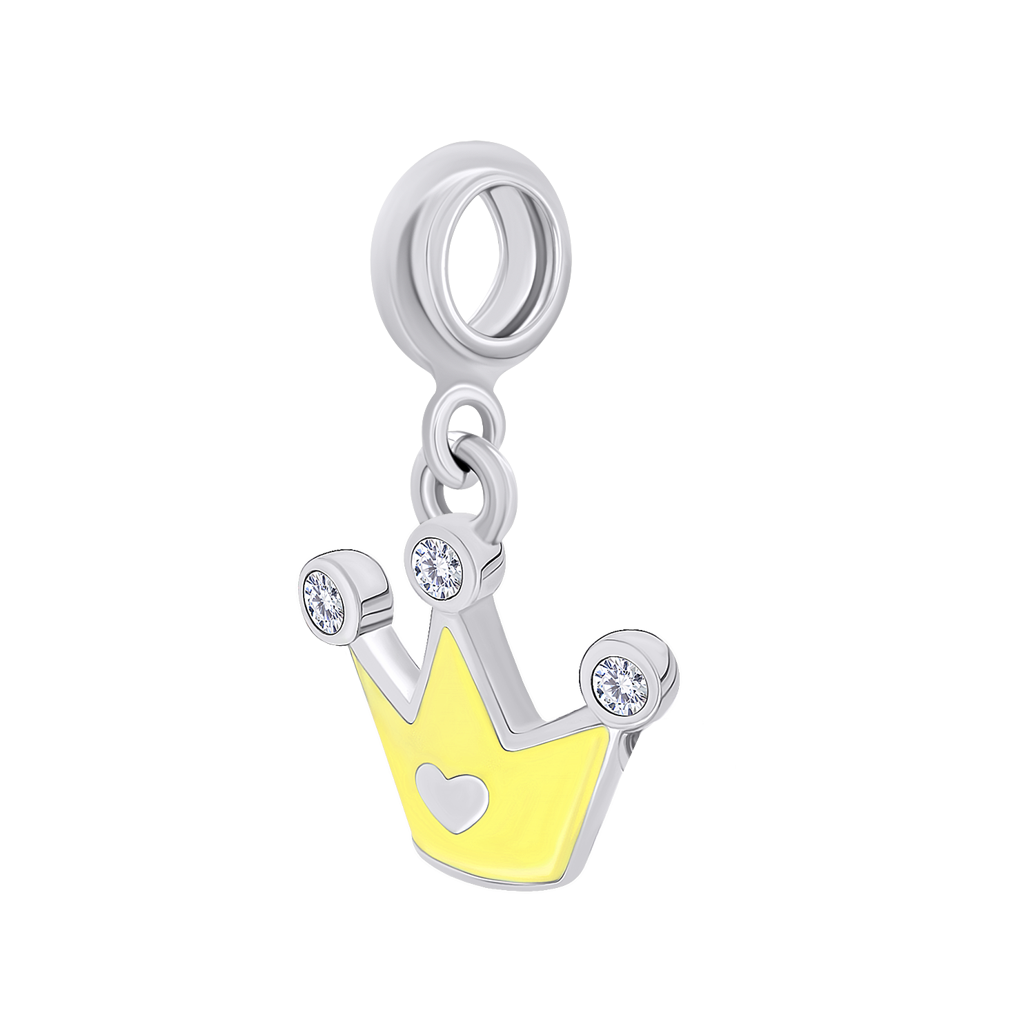 Кулон Корона з серцем з жовтою емаллю та фіанітами