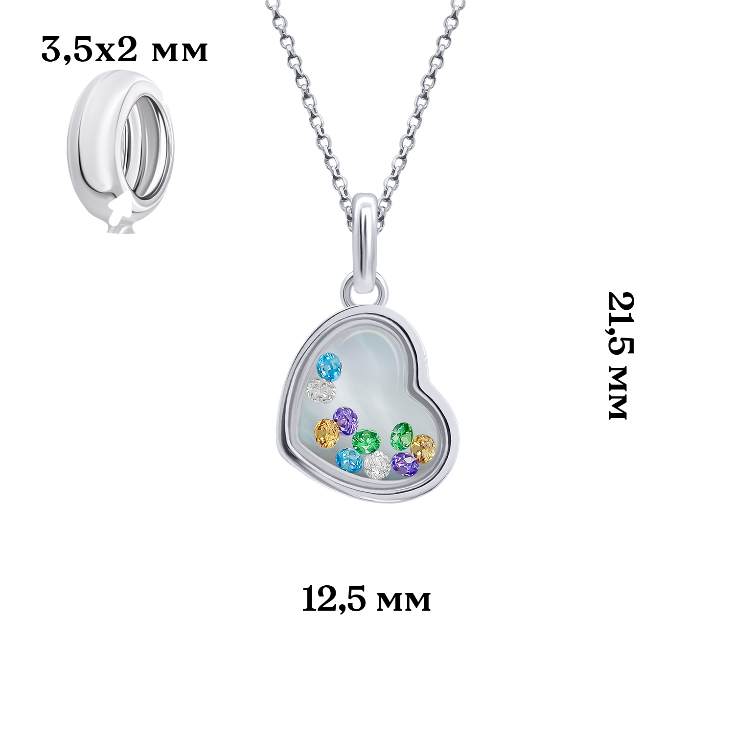 Кулон Серце велике з кольоровими рухливими фіанітами