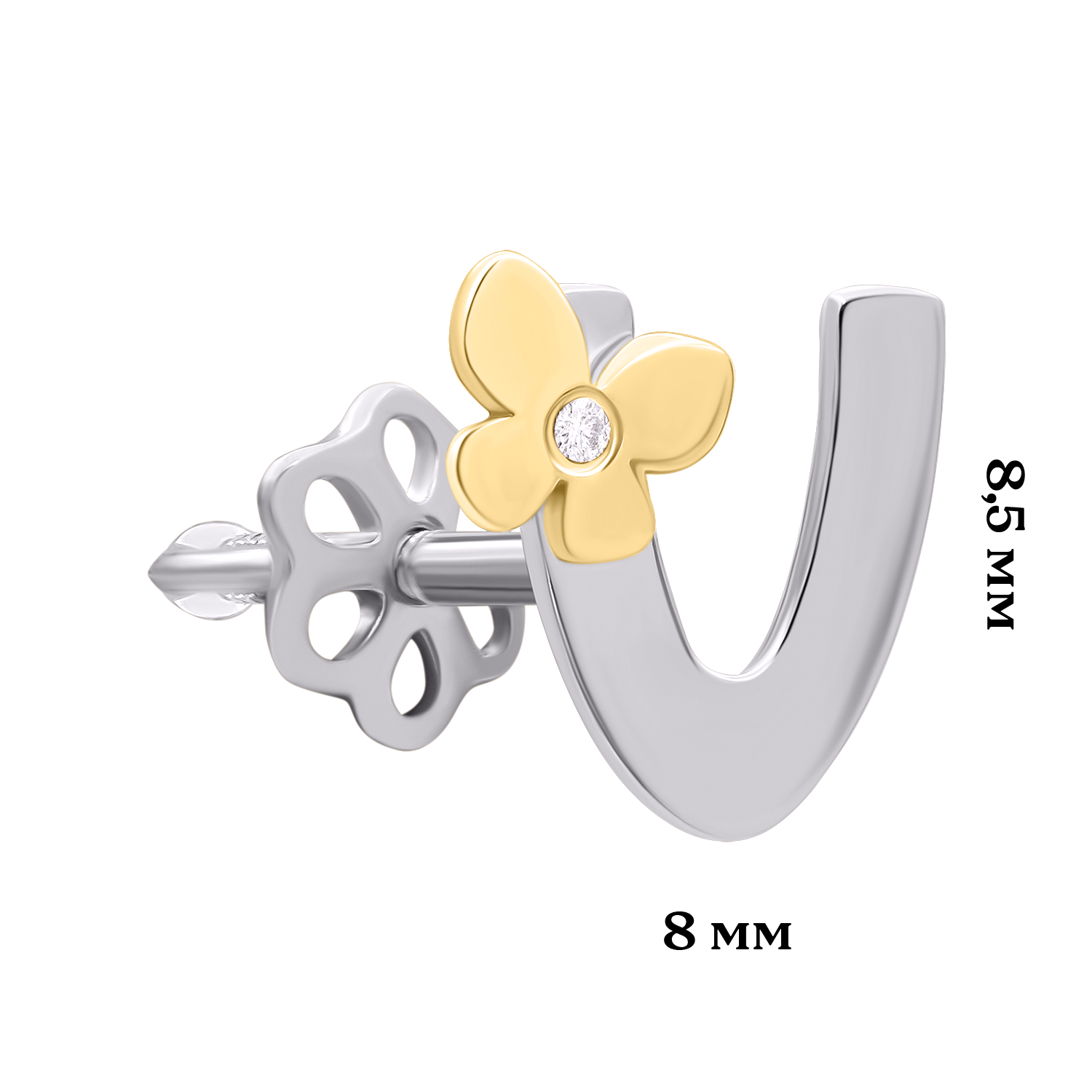 Моносережка з білого та жовтого золота з діамантом Літера V