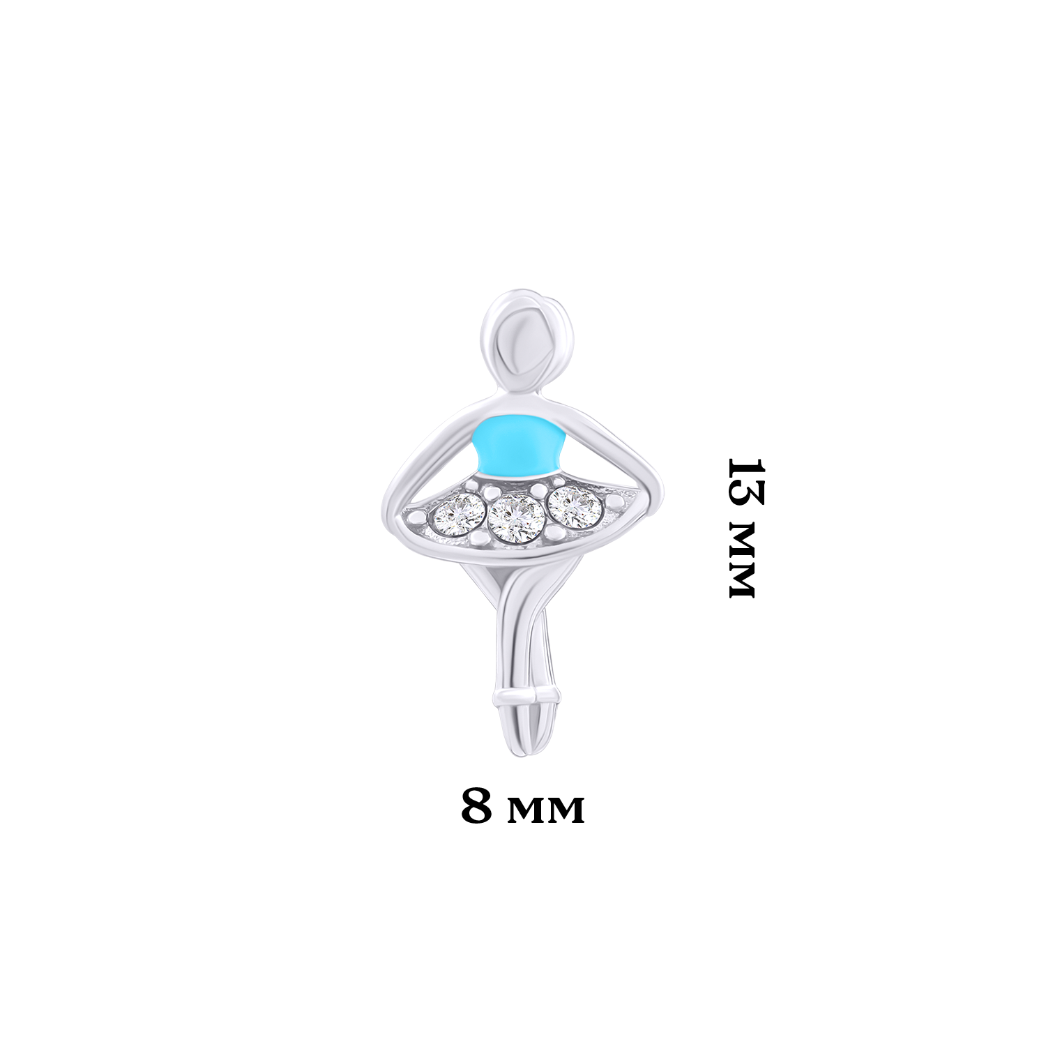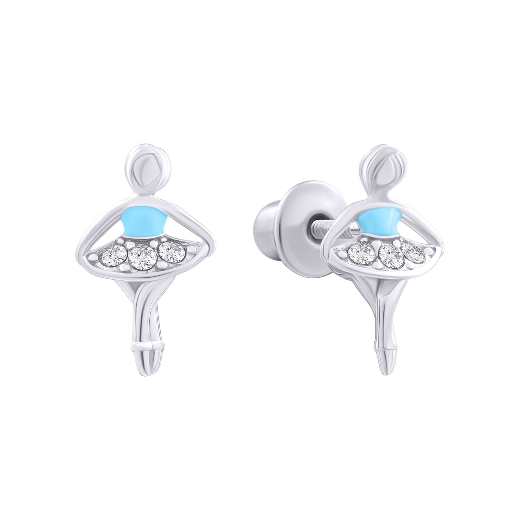 Сережки-пусети Балерина з блакитною емаллю та фіанітами із колекції UmaUmi Symbols – красиві, легкі і зручні дитячі сережки. Відмінний ювелірний подарунок на будь-яке свято!
