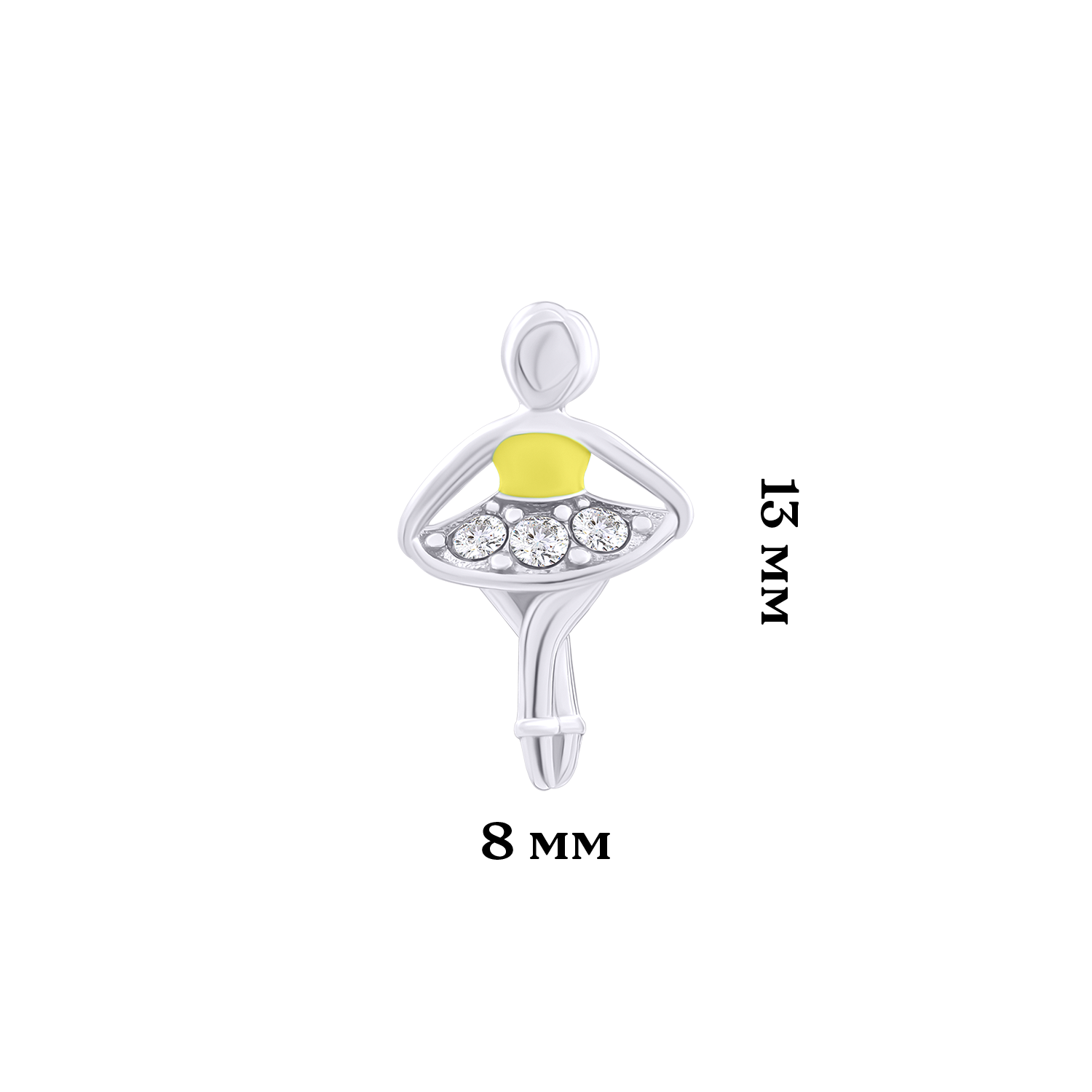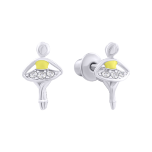 Сережки-пусети Балерина із жовтою емаллю та фіанітами із колекції UmaUmi Symbols – красиві, легкі і зручні дитячі сережки. Відмінний ювелірний подарунок на будь-яке свято!