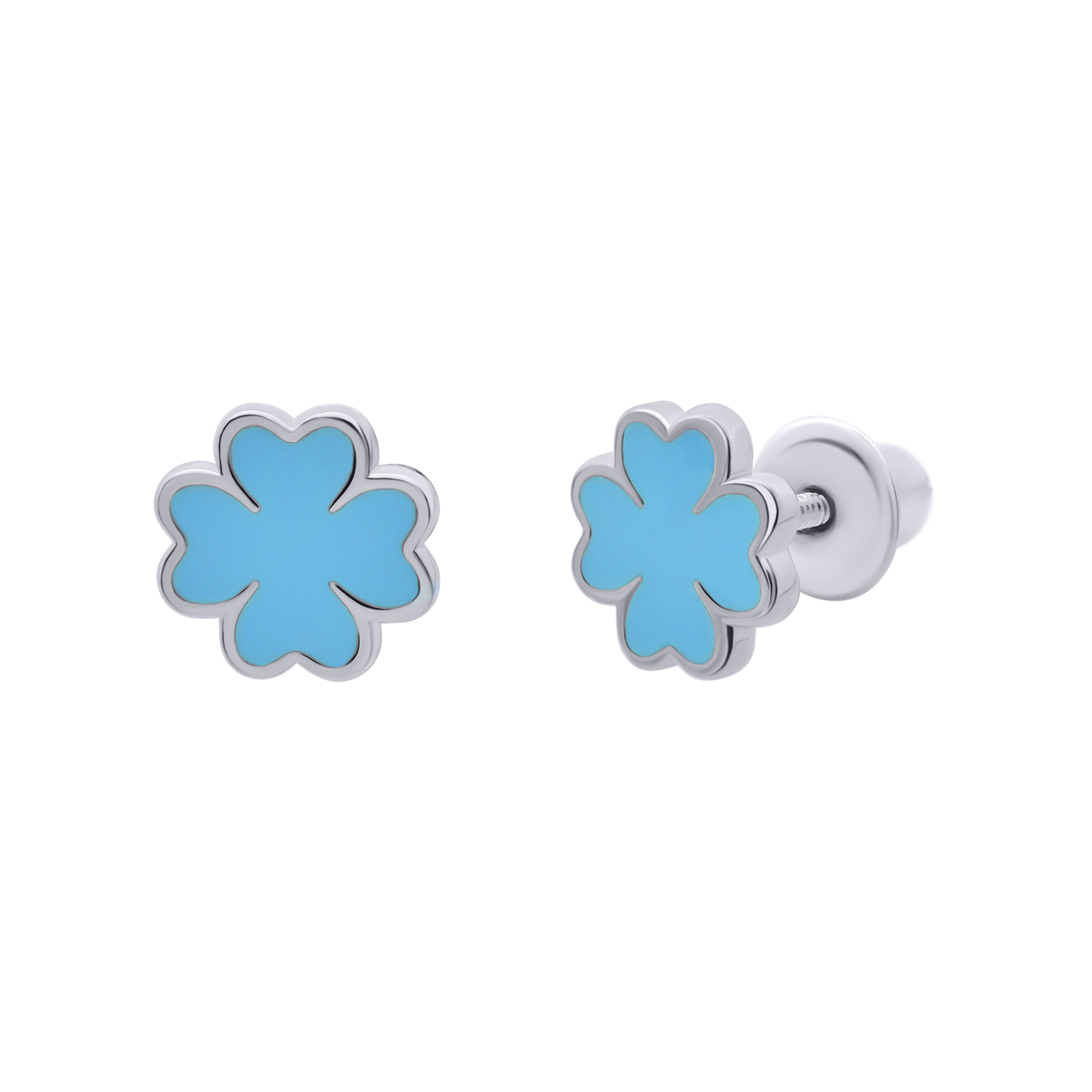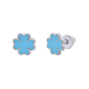 Сережки Чотирилисник блакитний із колекції UmaUmi Symbols – красиві, легкі і зручні дитячі сережки. Відмінний ювелірний подарунок на будь-яке свято!