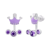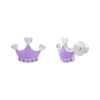 Сережки-джекети Корона з фіолетовими емаллю та фіанітами із колекції UmaUmi Symbols – красиві, легкі і зручні дитячі сережки. Відмінний ювелірний подарунок на будь-яке свято!