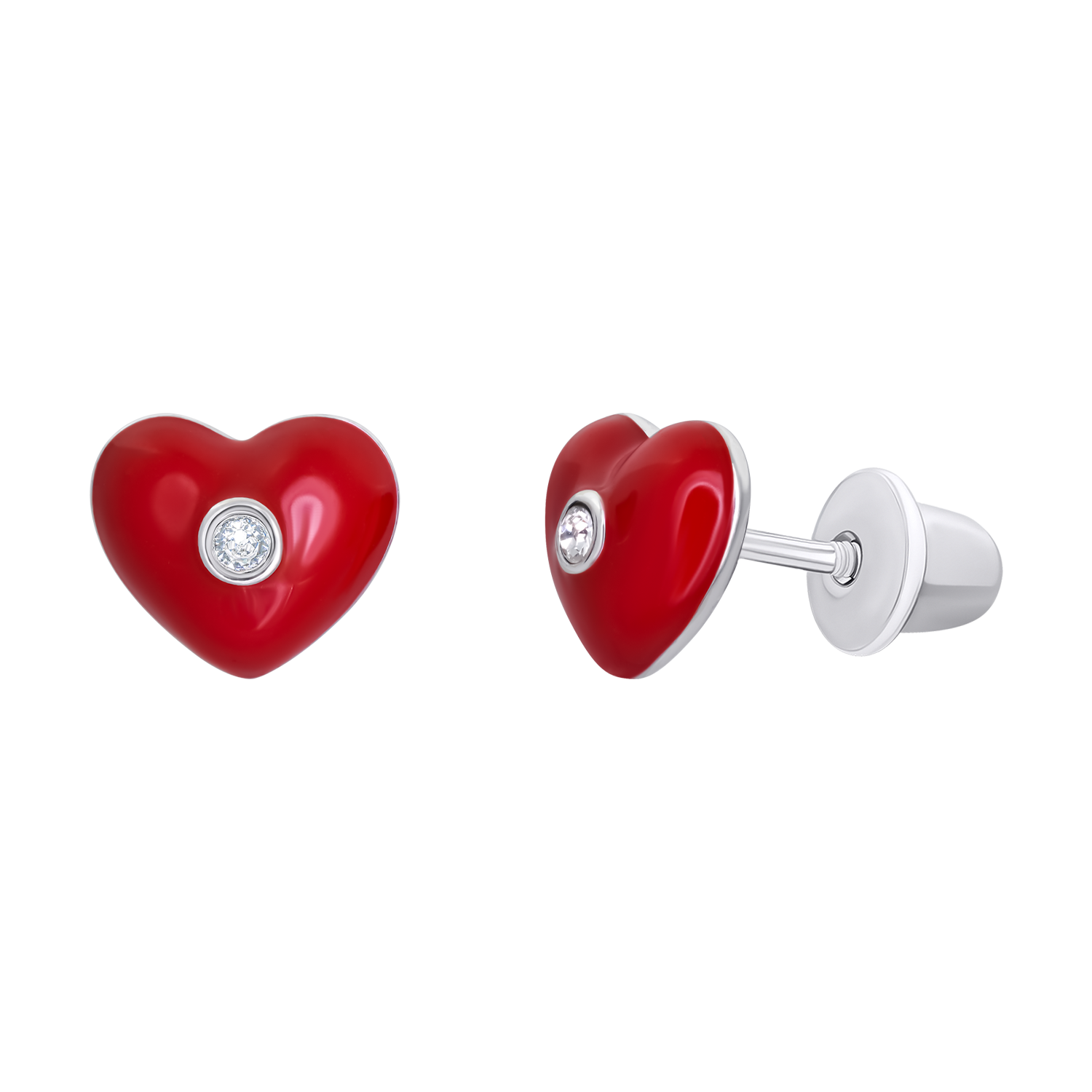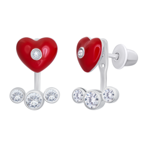 Сережки-джекети Серденько з червоною емаллю та фіанітами із колекції UmaUmi Symbols – красиві, легкі і зручні дитячі сережки. Відмінний ювелірний подарунок на будь-яке свято!