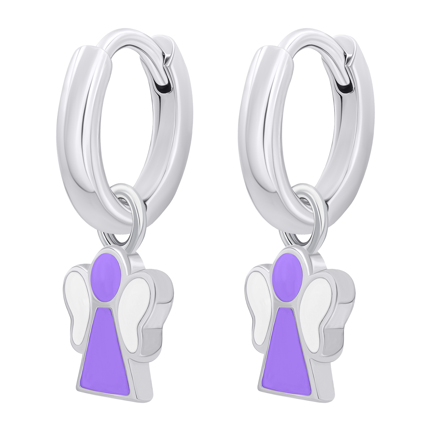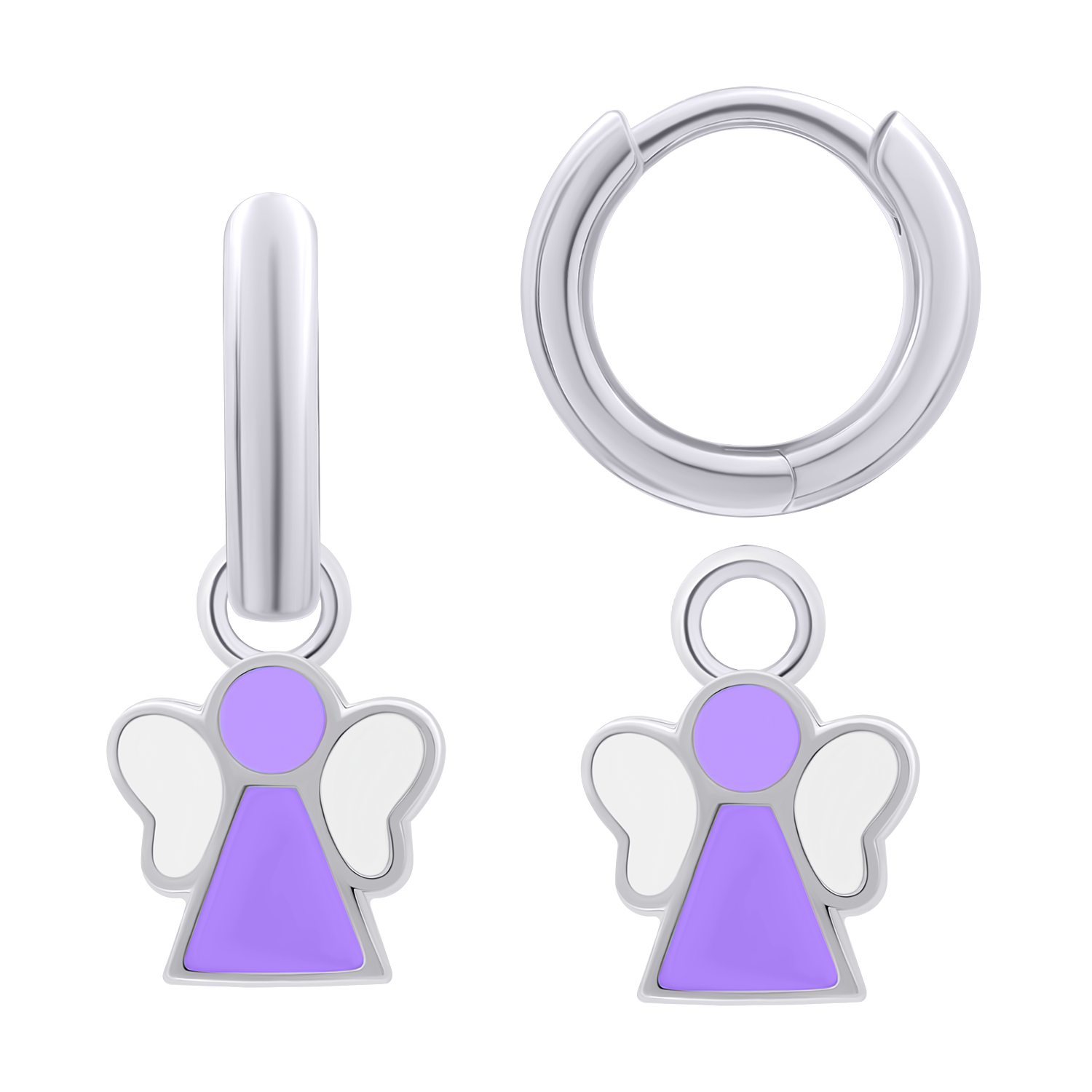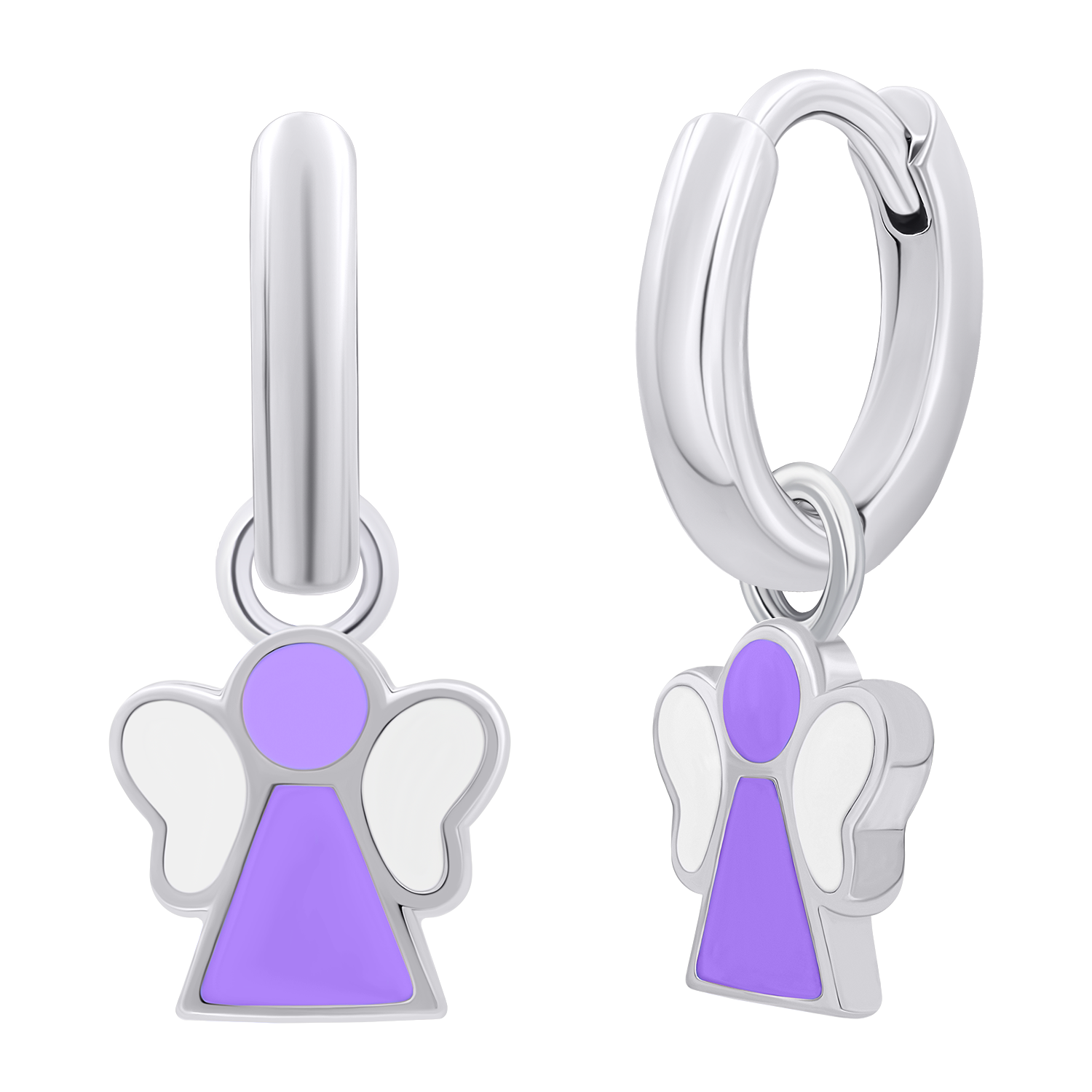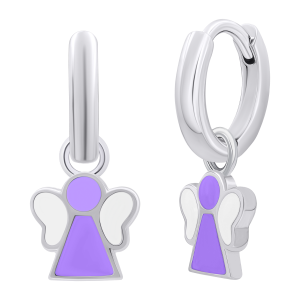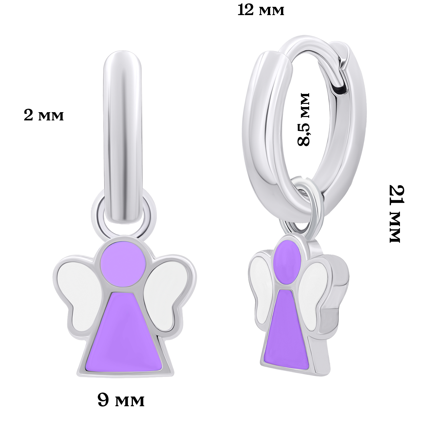 Сережки з підвісами Янголятко з фіолетовою та білою емаллю, d 12 мм із колекції UmaUmi Transformers – красиві, легкі і зручні дитячі сережки. Відмінний ювелірний подарунок на будь-яке свято!