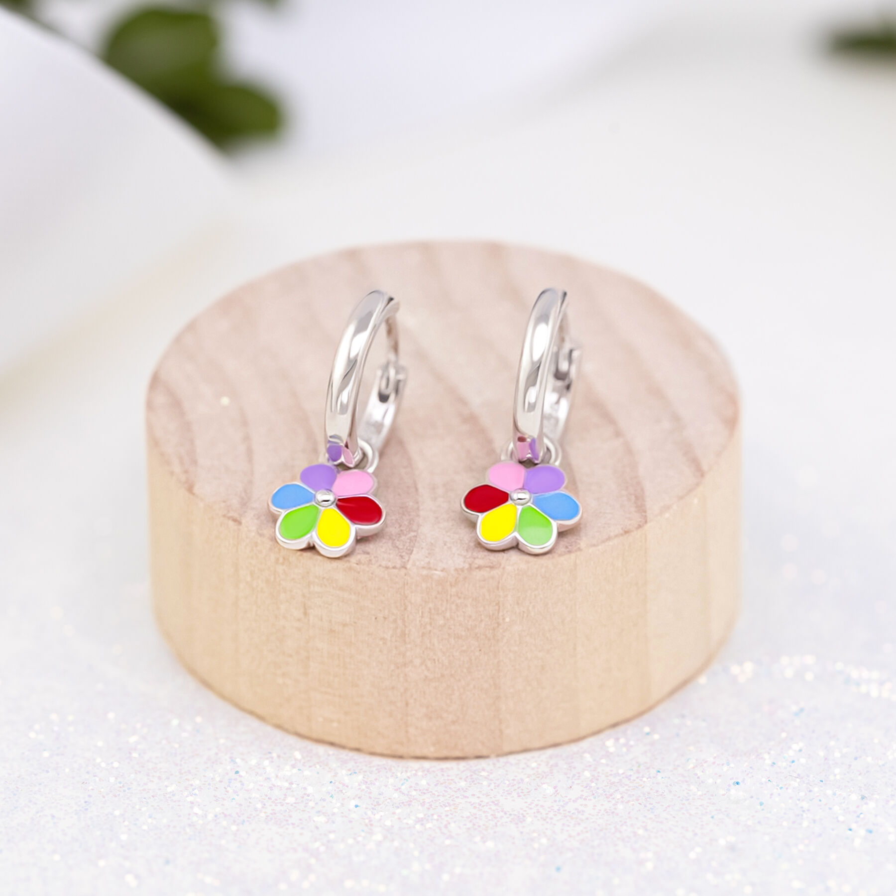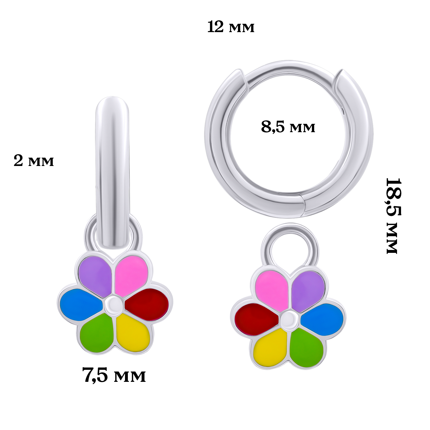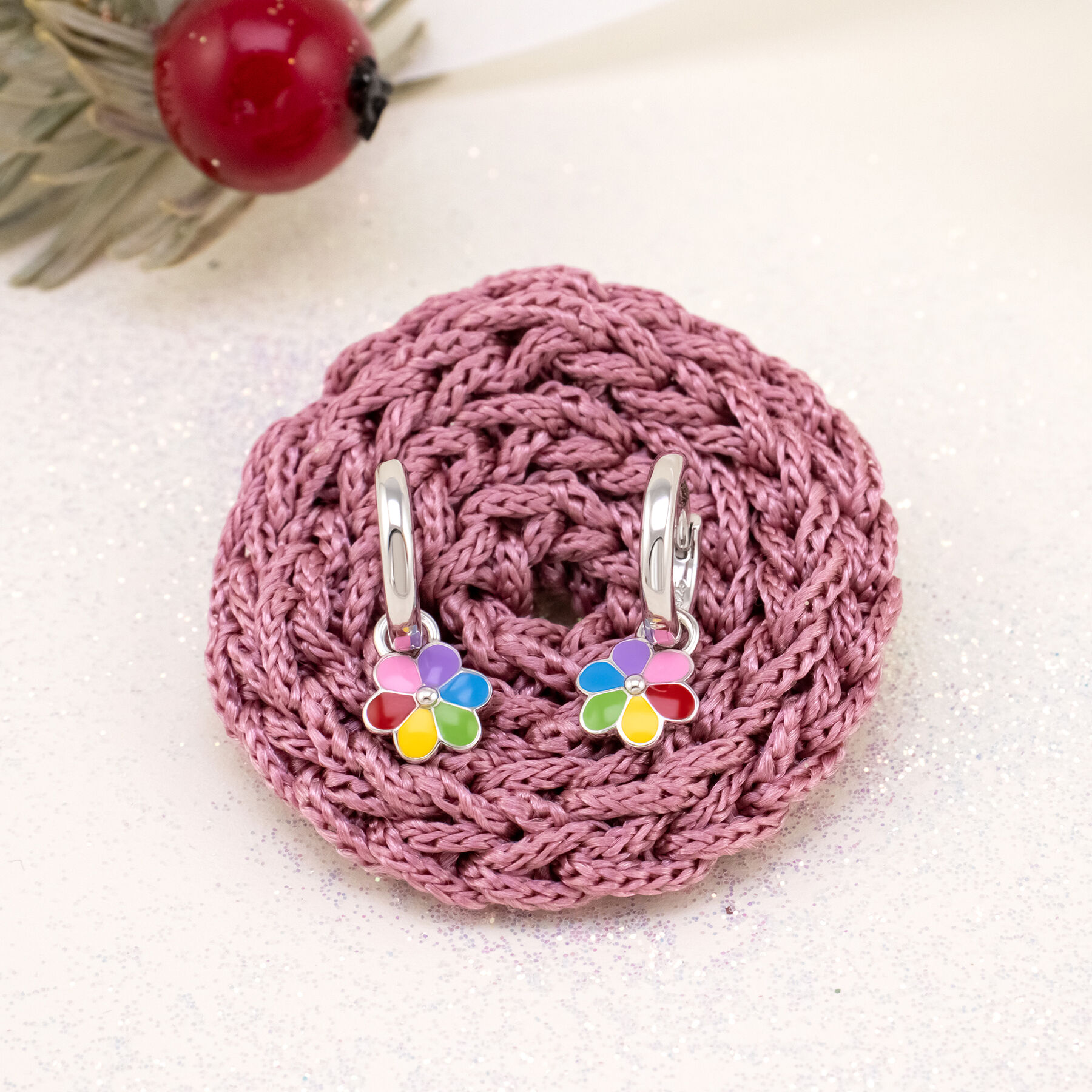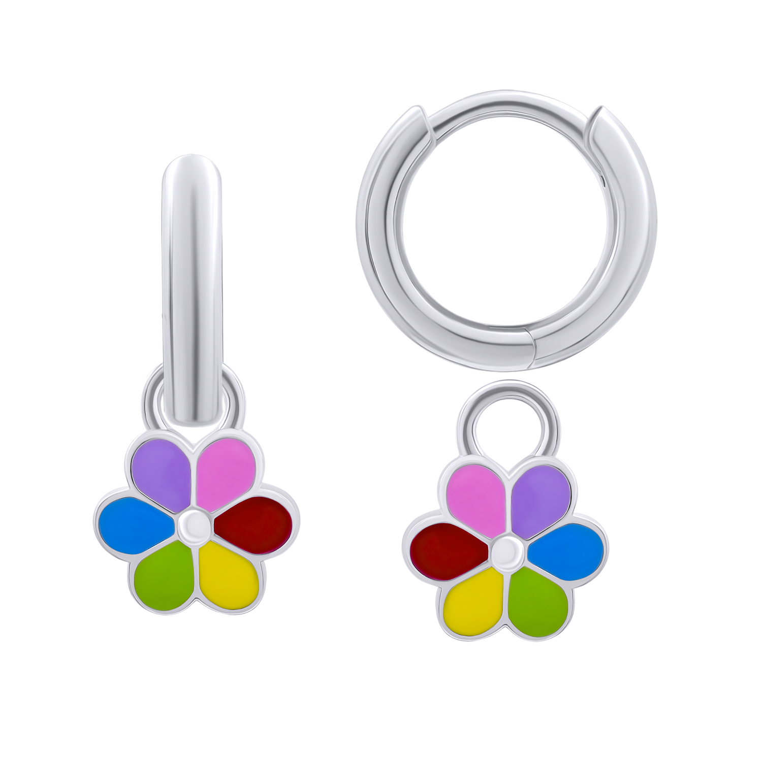 Сережки з підвісами Ромашка кольорова з різнобарвною емаллю, d 12 мм із колекції UmaUmi Transformers – красиві, легкі і зручні дитячі сережки. Відмінний ювелірний подарунок на будь-яке свято!