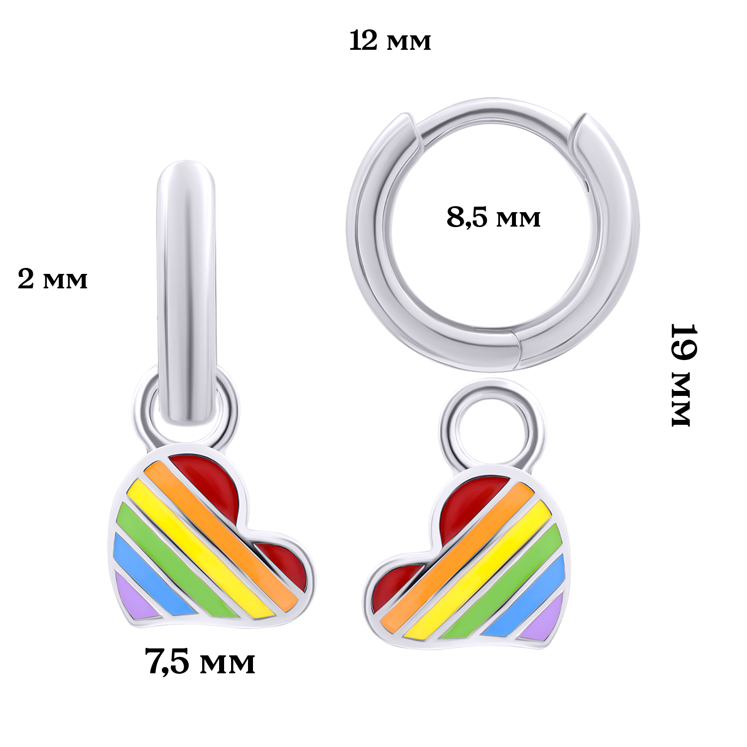 Сережки з підвісами Серце кольорове з різнобарвною емаллю, d 12 мм із колекції UmaUmi Transformers – красиві, легкі і зручні дитячі сережки. Відмінний ювелірний подарунок на будь-яке свято!