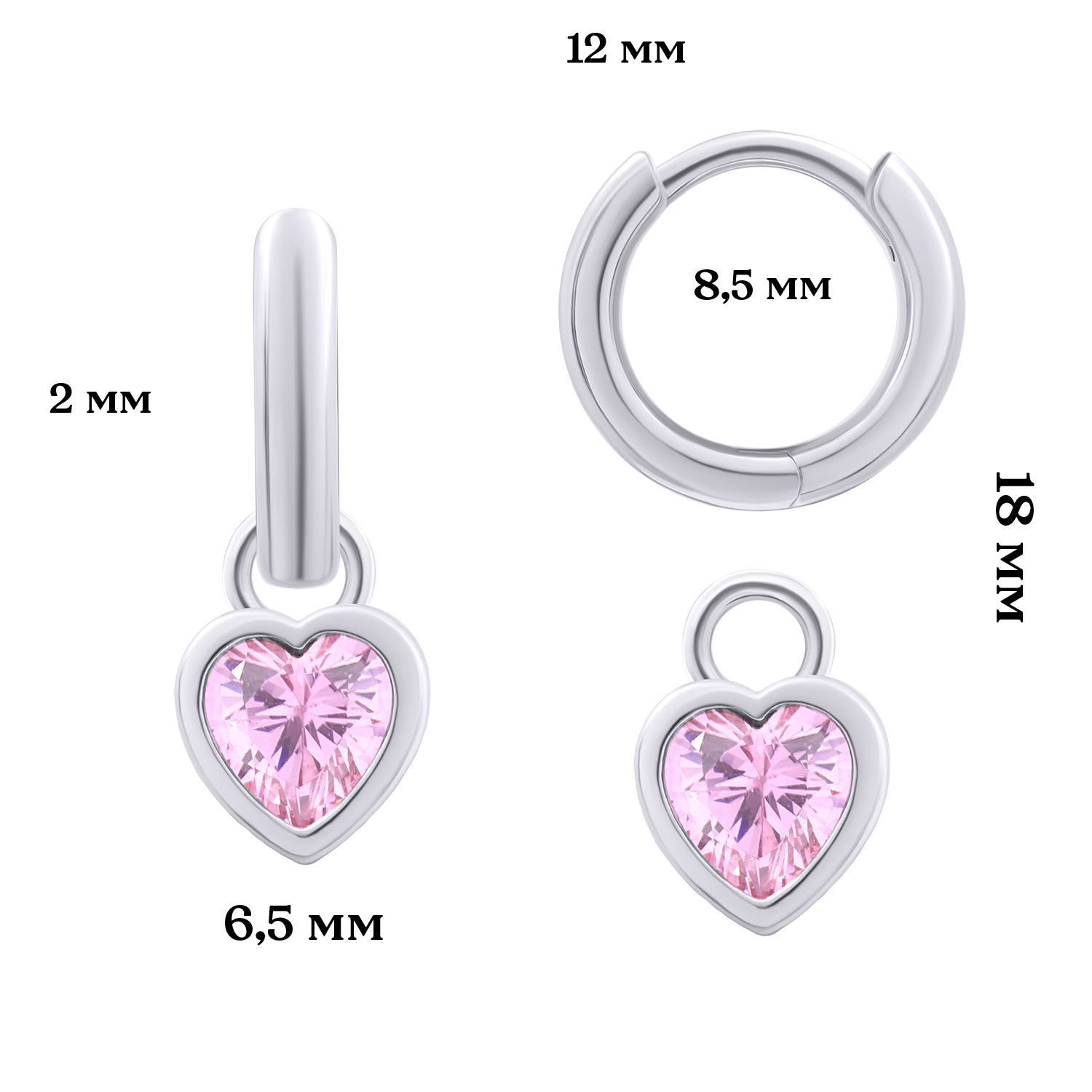 Сережки з підвісами Серце сяюче з рожевими фіанітами, d 12 мм із колекції UmaUmi Transformers – красиві, легкі і зручні дитячі сережки. Відмінний ювелірний подарунок на будь-яке свято!