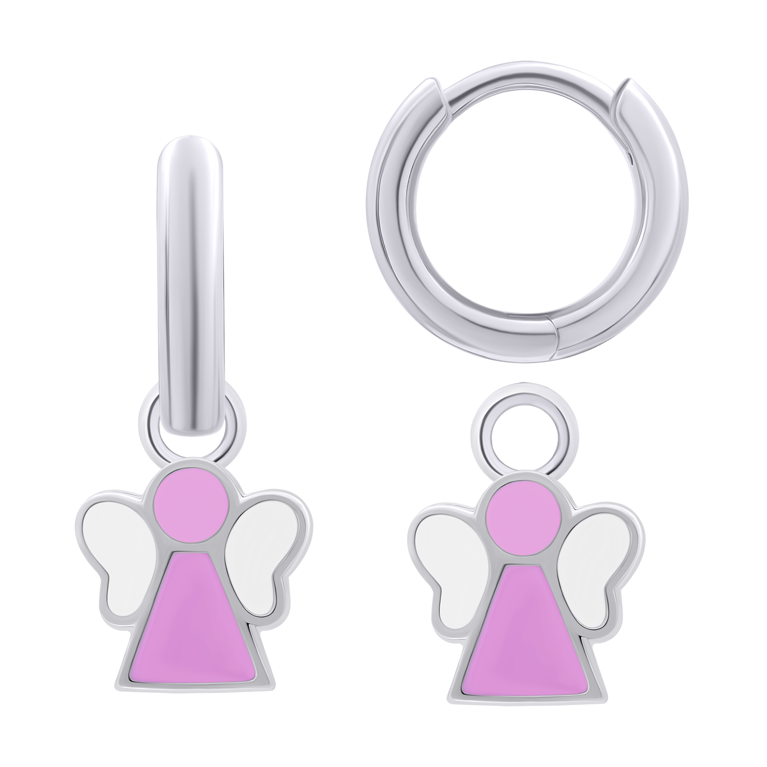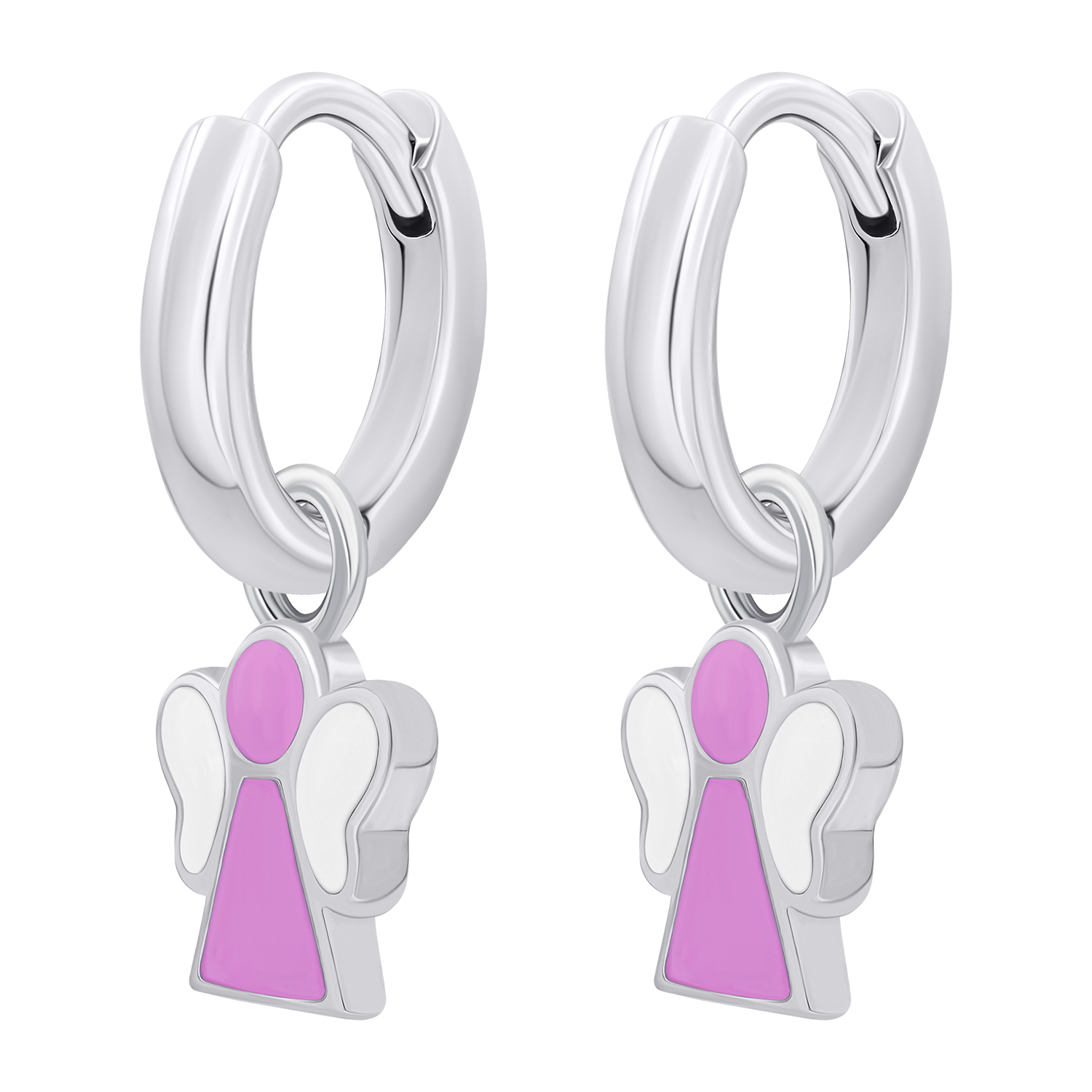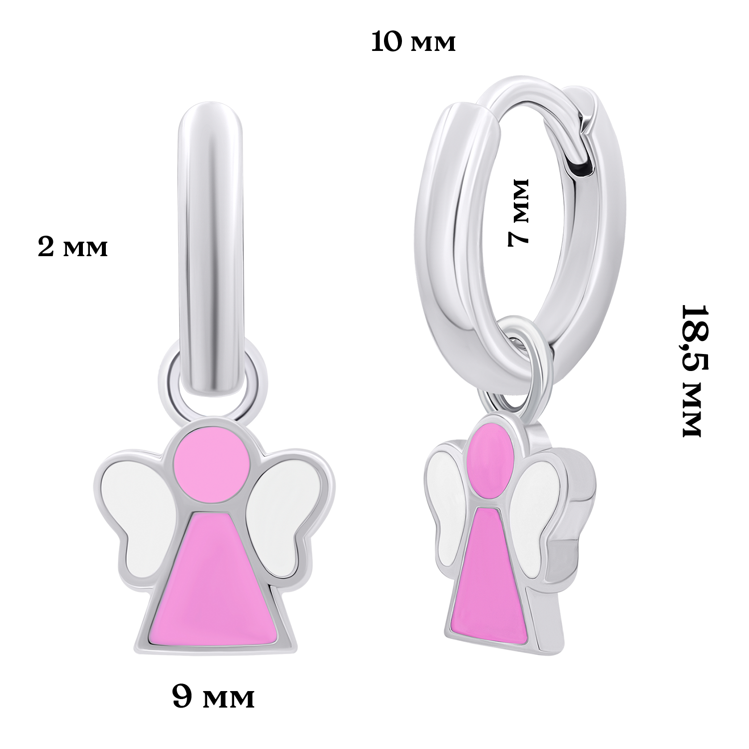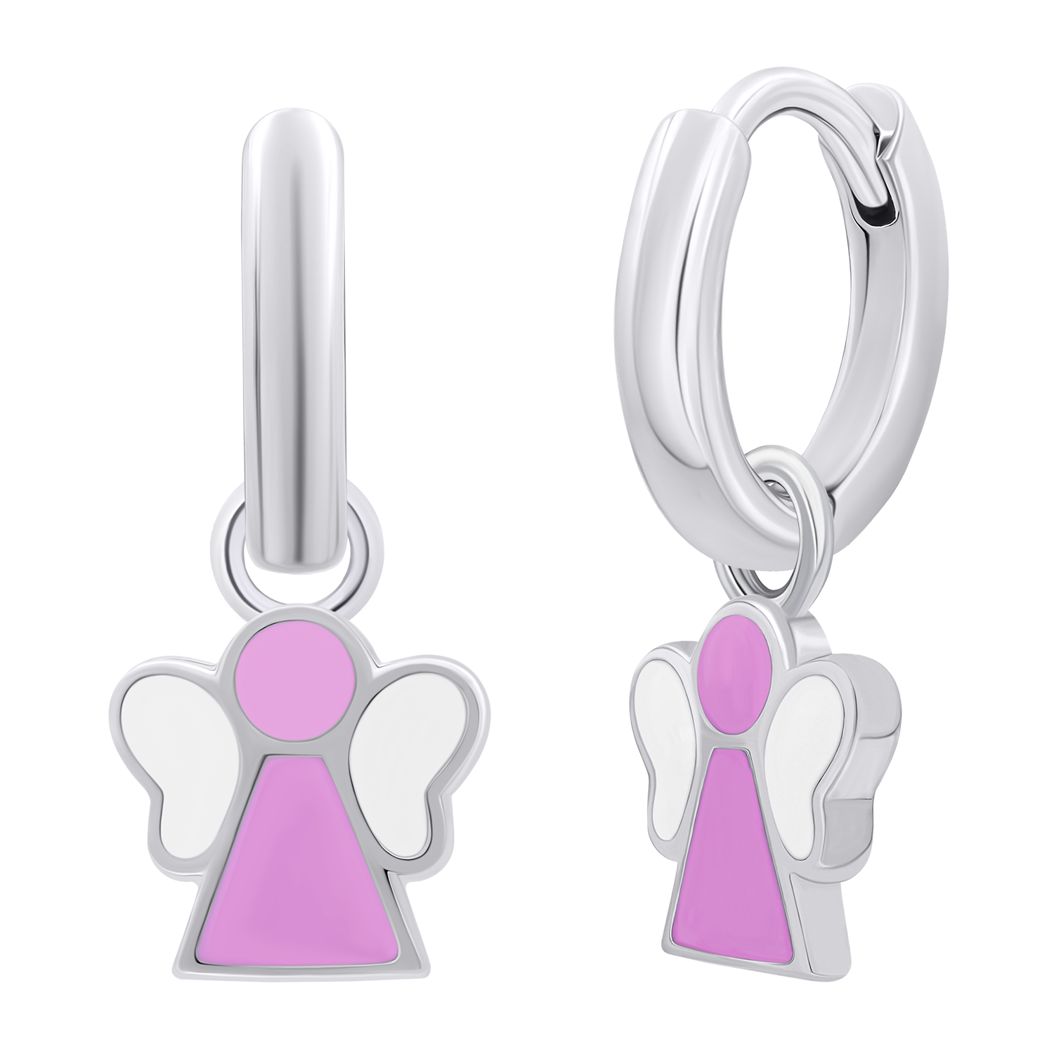 Сережки з підвісами Янголятко з рожевою та білою емаллю із колекції UmaUmi Transformers – красиві, легкі і зручні дитячі сережки. Відмінний ювелірний подарунок на будь-яке свято!