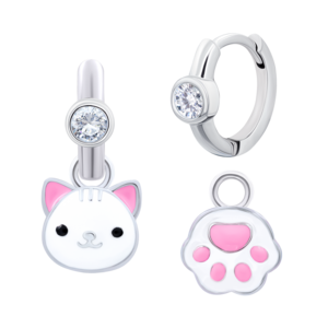 Ми в UmaUmi створюємо ексклюзивні прикраси для дітей, враховуючи усі нюанси життя крихіток. Сережки з підвісами Котик з лапкою з білою, рожевою емаллю та фіанітами в наявності – зручна доставка по всій Україні протягом 2-5 днів.