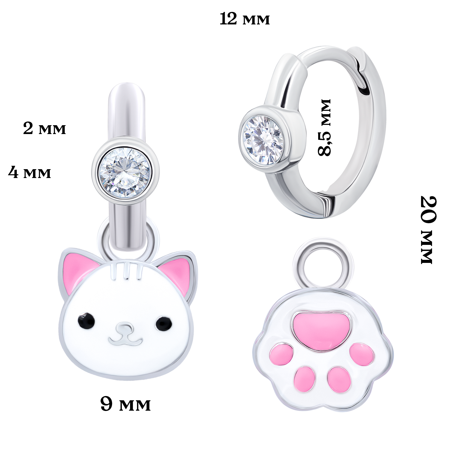 Сережки з підвісами Котик з лапкою з білою, рожевою емаллю та фіанітами із колекції UmaUmi Transformers – красиві, легкі і зручні дитячі сережки. Відмінний ювелірний подарунок на будь-яке свято!