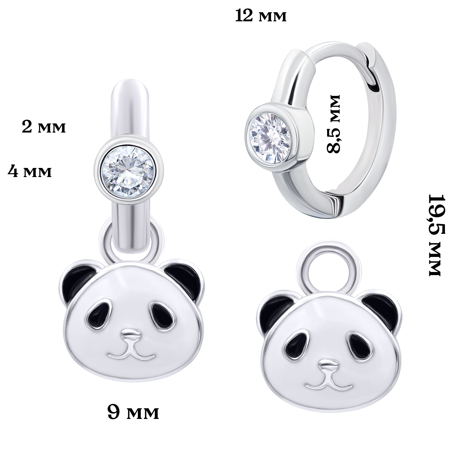 Сережки з підвісами Панда з білими фіанітами із колекції UmaUmi Transformers – красиві, легкі і зручні дитячі сережки. Відмінний ювелірний подарунок на будь-яке свято!