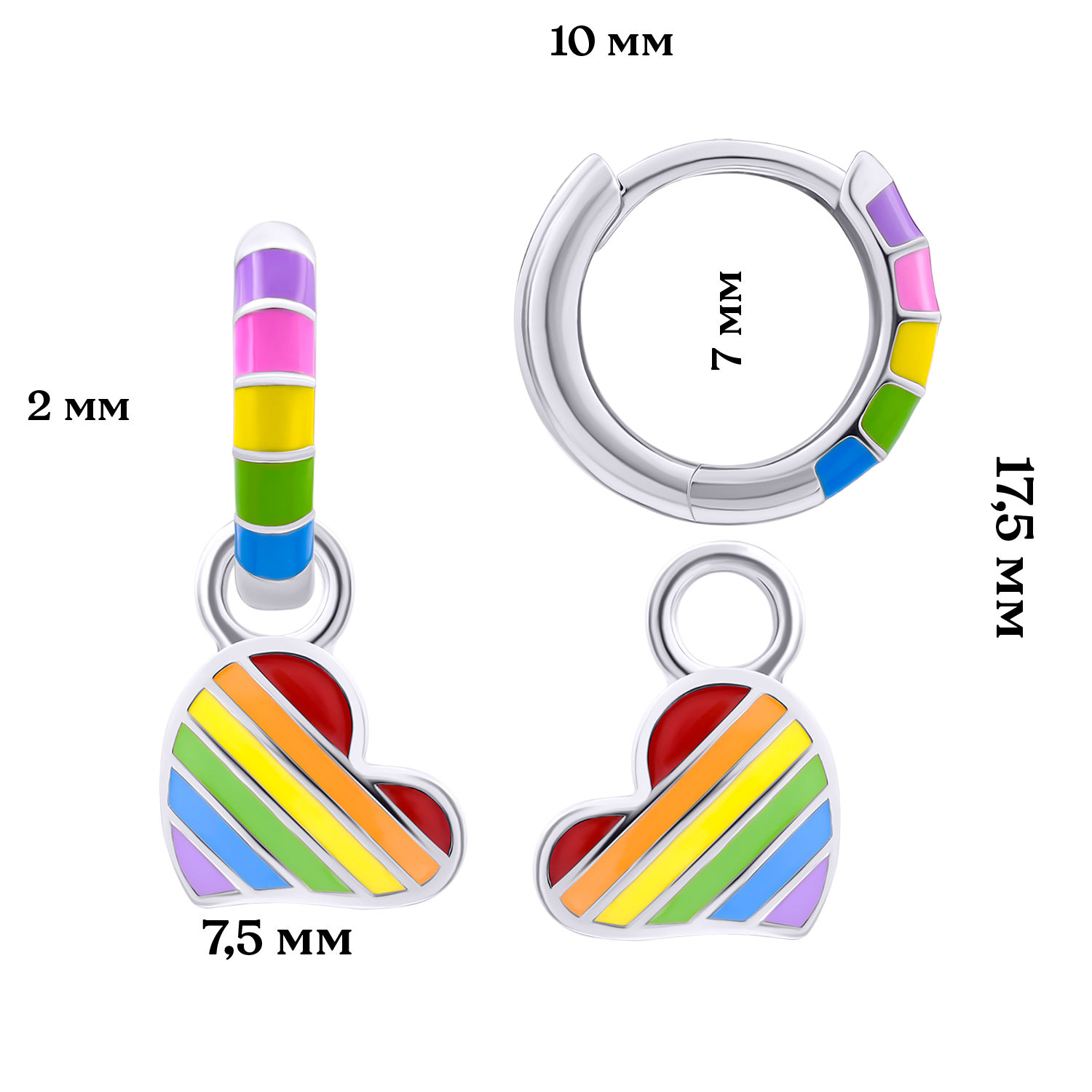 Сережки веселкові з підвісами Серце кольорове з різнобарвною емаллю із колекції UmaUmi Transformers – красиві, легкі і зручні дитячі сережки. Відмінний ювелірний подарунок на будь-яке свято!