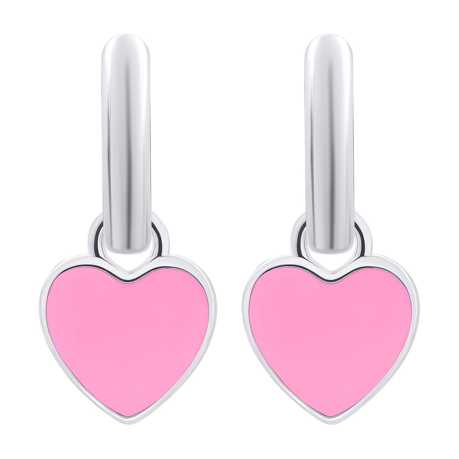 Сережки з підвісами Серце з рожевою емаллю із колекції UmaUmi Transformers – красиві, легкі і зручні дитячі сережки. Відмінний ювелірний подарунок на будь-яке свято!