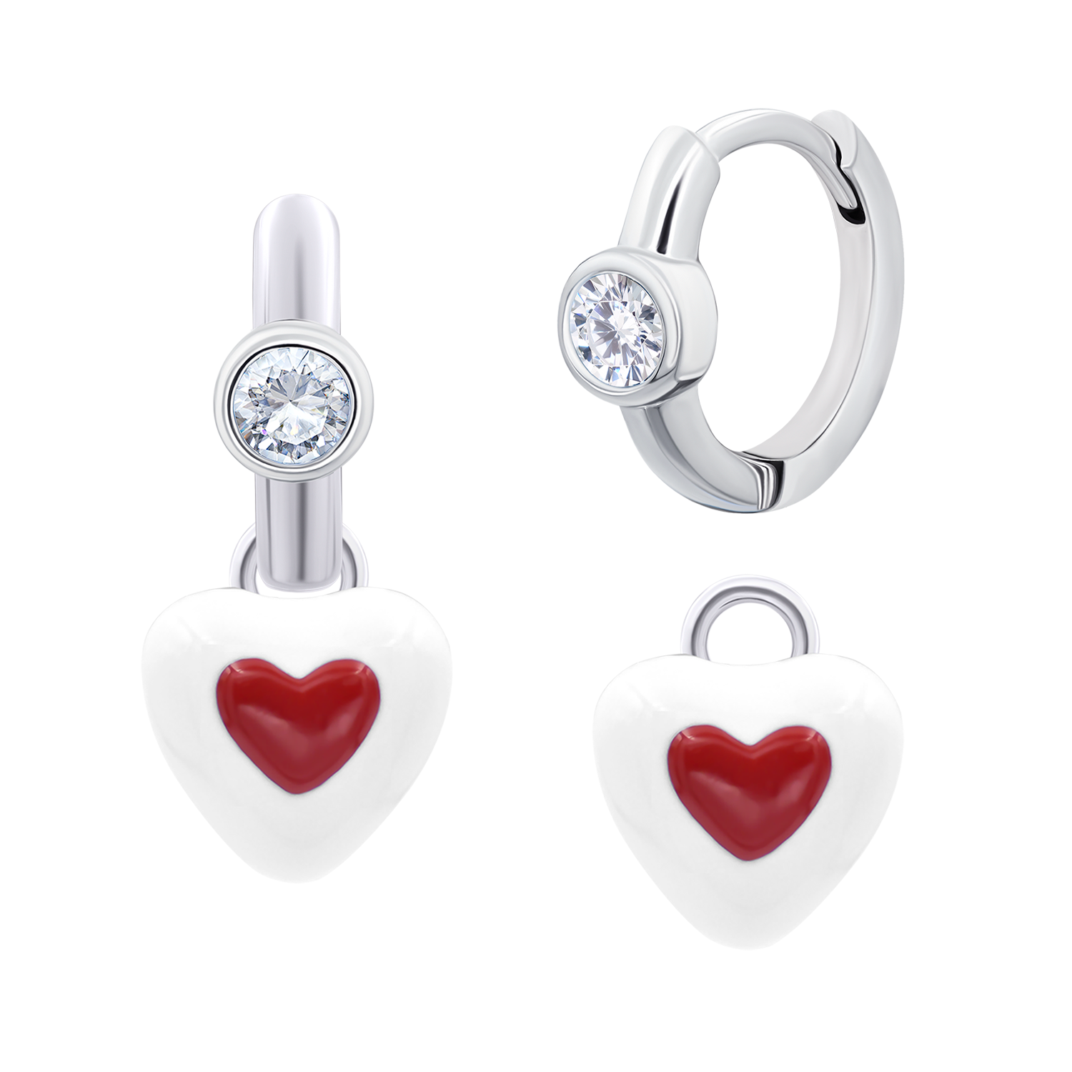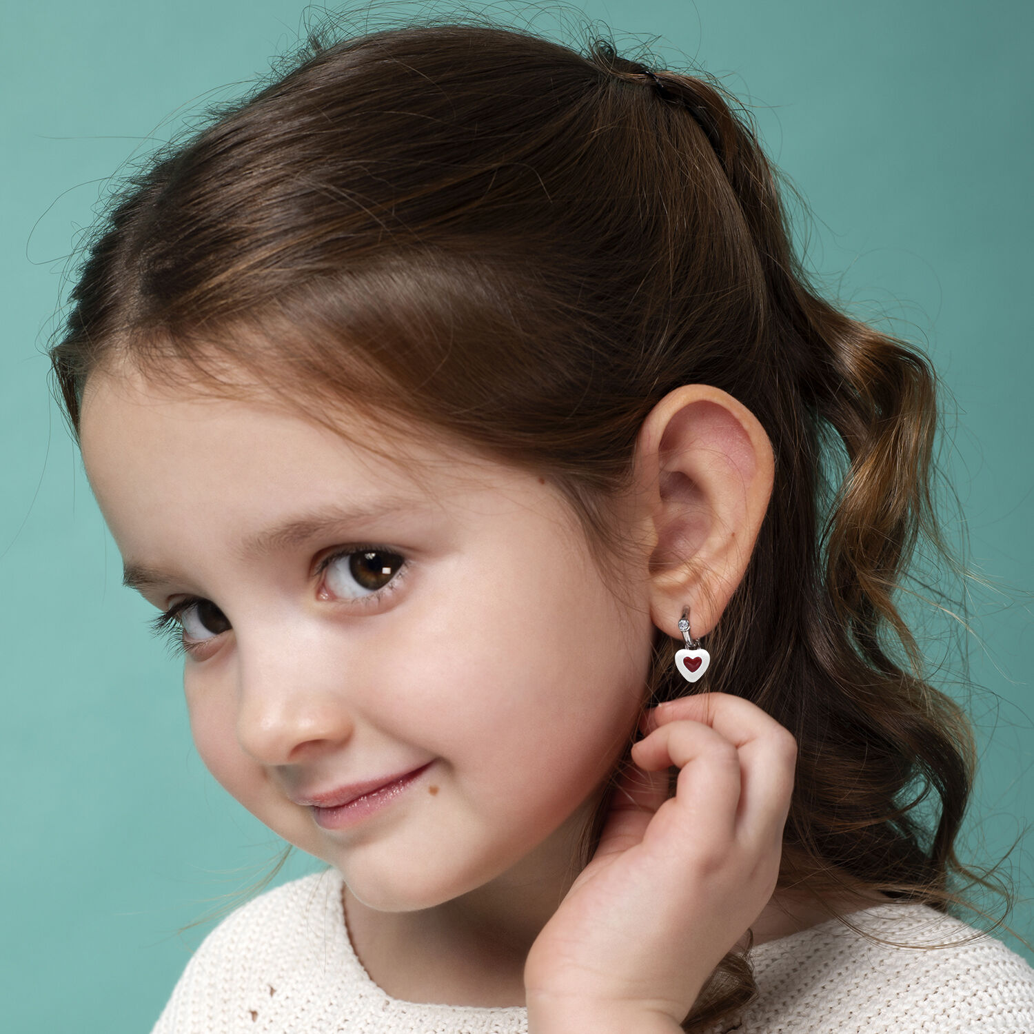 Сережки з підвісами Серце в серці з білими фіанітами можна легко купити на нашому сайті. Вони створені спеціально для діток: без гострих кутів і з тонкими штифтами, які не травмують вушко. Ми використовуємо надійні закрутки, щоб принцеси раділи обновці і не губили її. Дитячі сережки UmaUmi – це завжди крутий дизайн для ваших маленьких модниць. На сайті UmaUmi ви знайдете великий вибір прекрасних дитячих сережок відмінної якості для замовлення онлайн. Наші сережки підходять зірочкам різному віку, навіть уже дорослим. Вони добре сидять у дитячому вушку. Доступні до покупки за оптимальною ціною. Сережки UmaUmi створені із благородних металів високої проби й оздоблені емаллю та фіанітами.