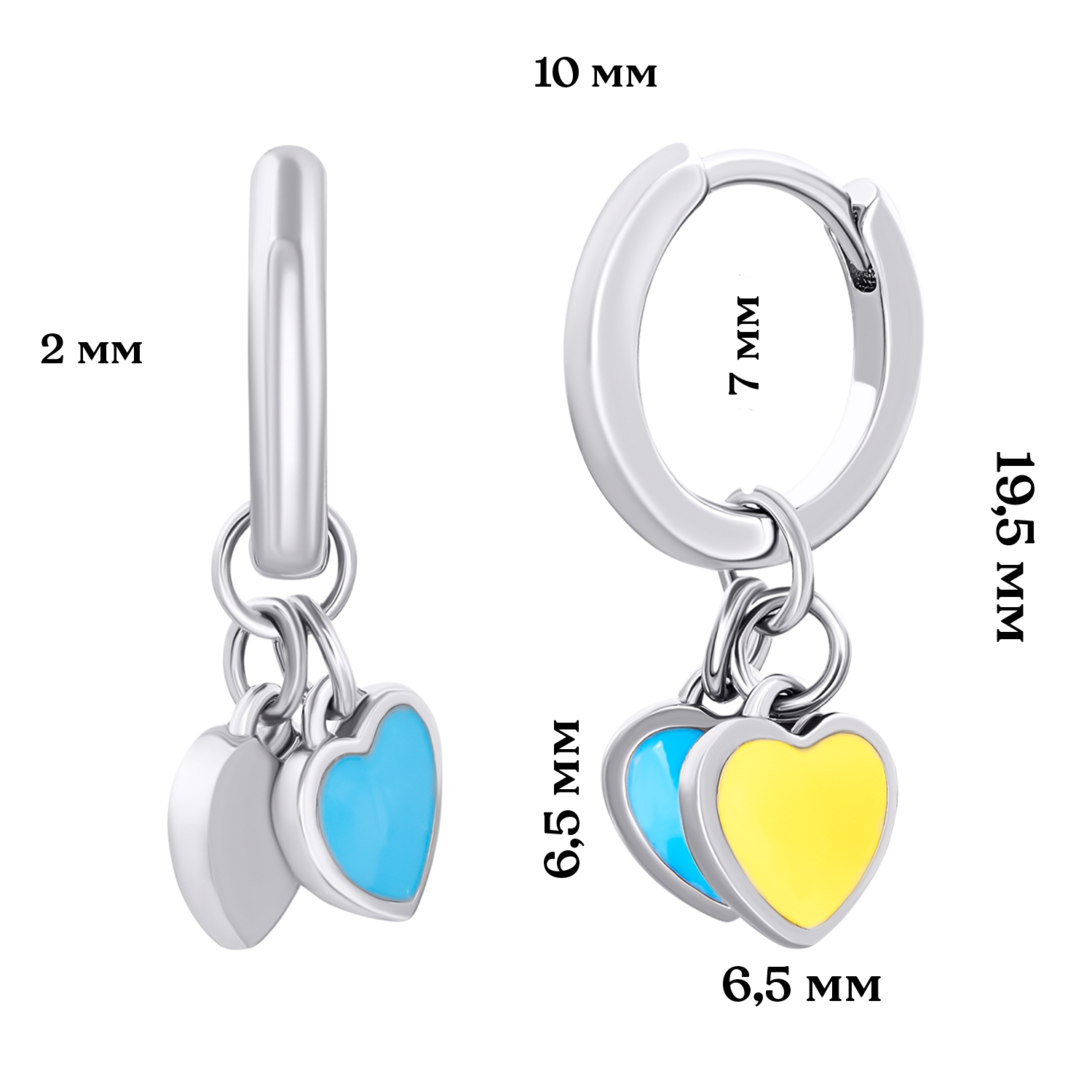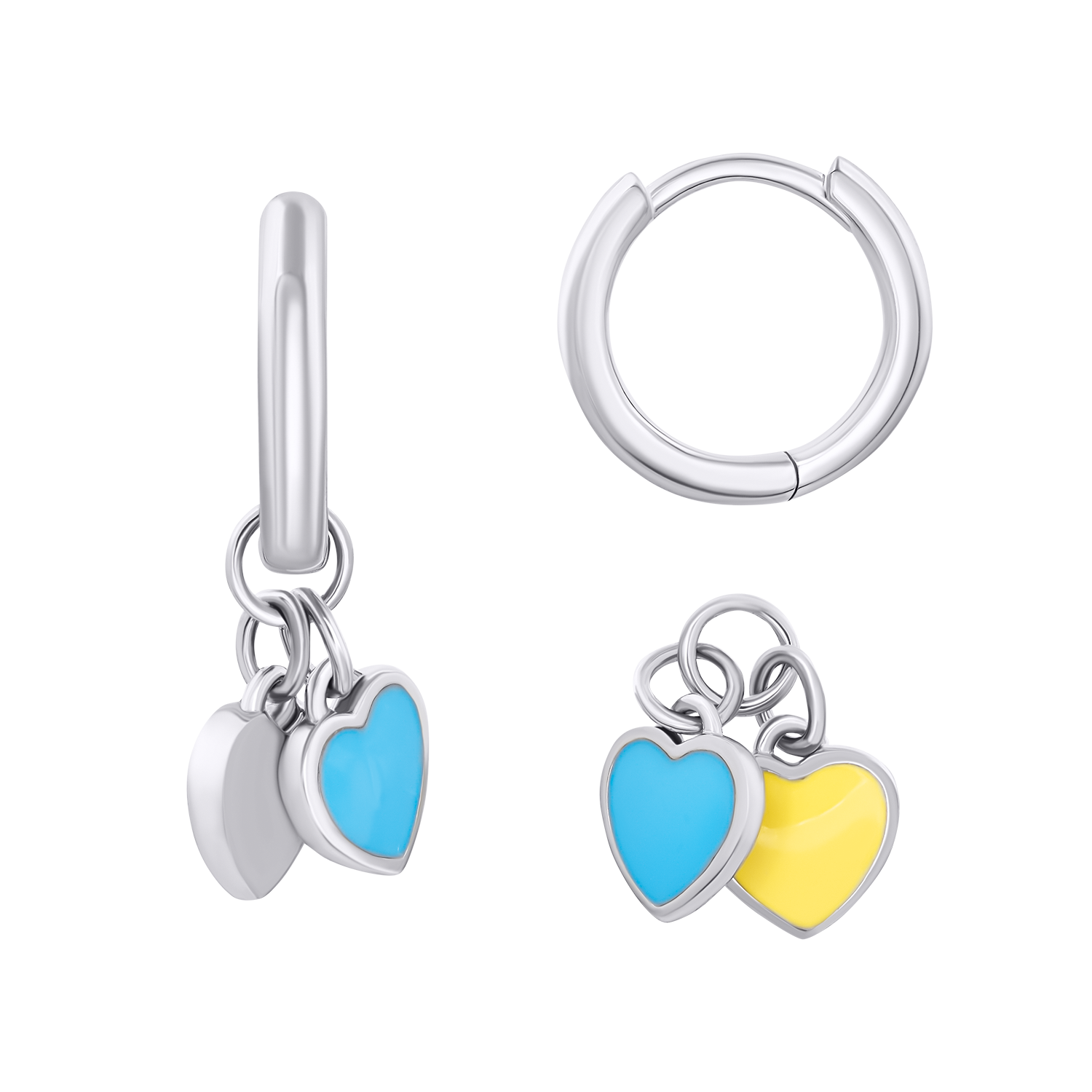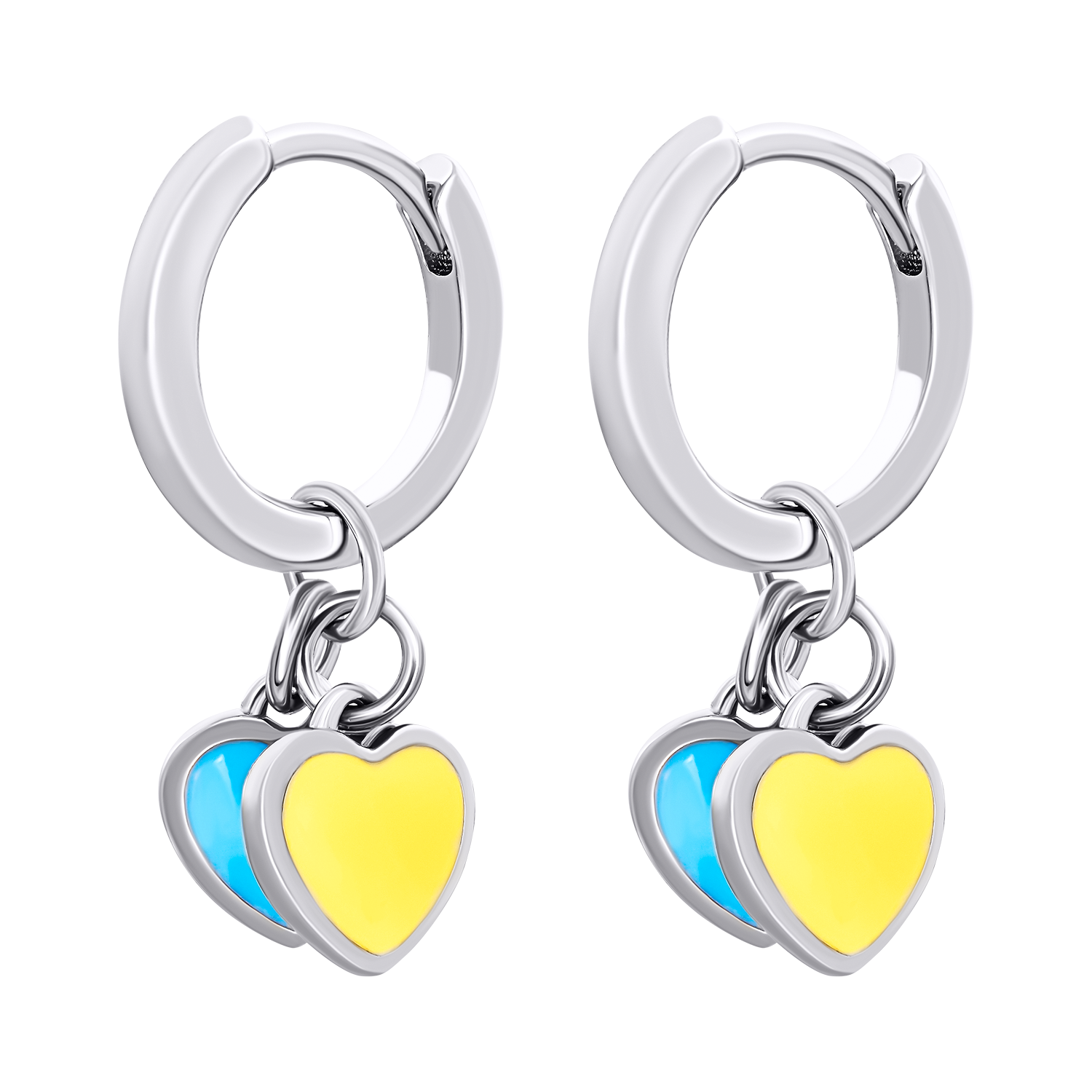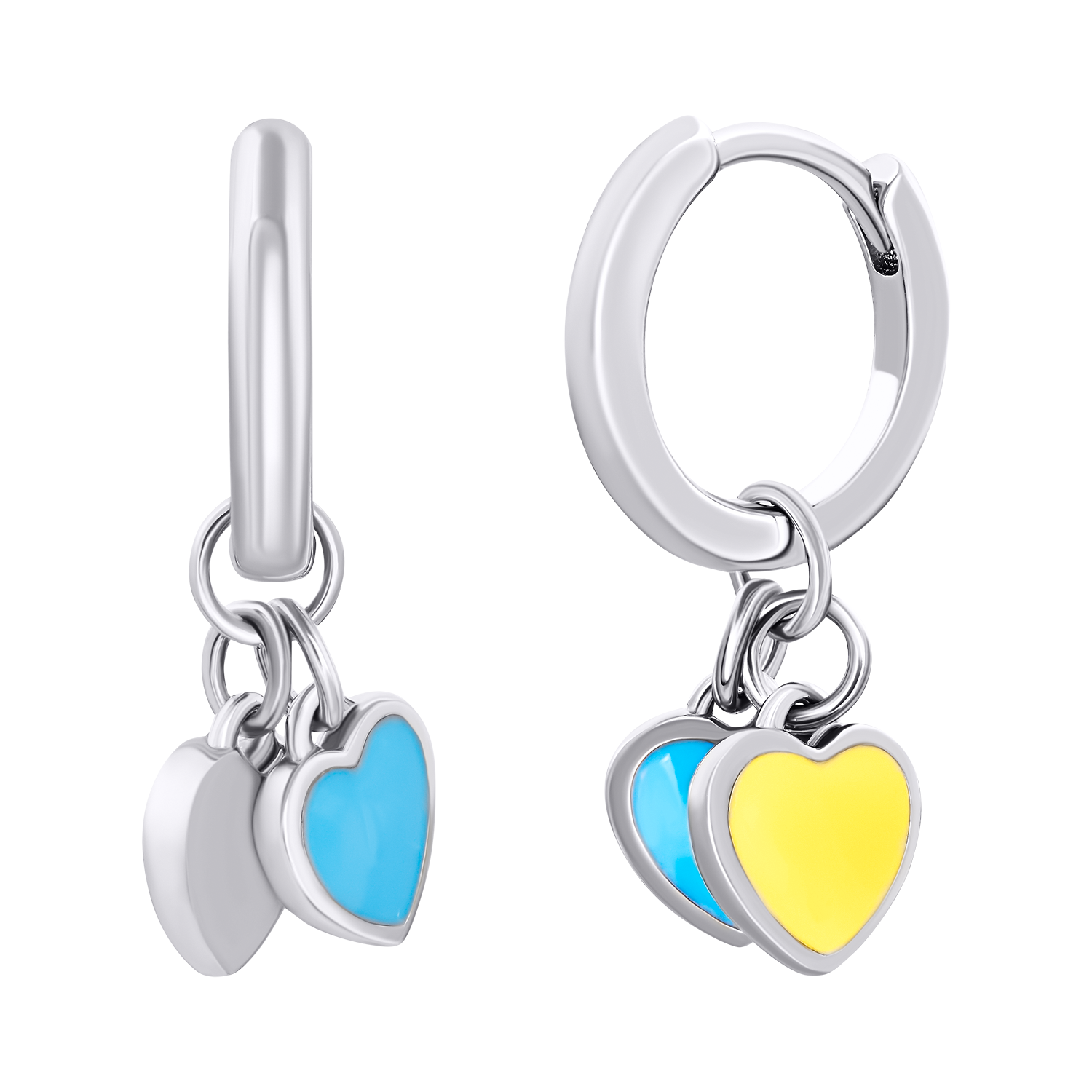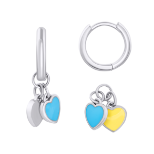 Сережки з підвісами-серцями Україна із жовтою та блакитною емаллю із колекції UmaUmi Transformers,UmaUmi Ukraine – красиві, легкі і зручні дитячі сережки. Відмінний ювелірний подарунок на будь-яке свято!
