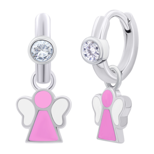 Сережки з підвісами Янголятко рожеве з білими фіанітами можна легко купити на нашому сайті. Вони створені спеціально для діток: без гострих кутів і з тонкими штифтами, які не травмують вушко. Ми використовуємо надійні закрутки, щоб принцеси раділи обновці і не губили її. Дитячі сережки UmaUmi – це завжди крутий дизайн для ваших маленьких модниць. На сайті UmaUmi ви знайдете великий вибір прекрасних дитячих сережок відмінної якості для замовлення онлайн. Наші сережки підходять зірочкам різному віку, навіть уже дорослим. Вони добре сидять у дитячому вушку. Доступні до покупки за оптимальною ціною. Сережки UmaUmi створені із благородних металів високої проби й оздоблені емаллю та фіанітами.