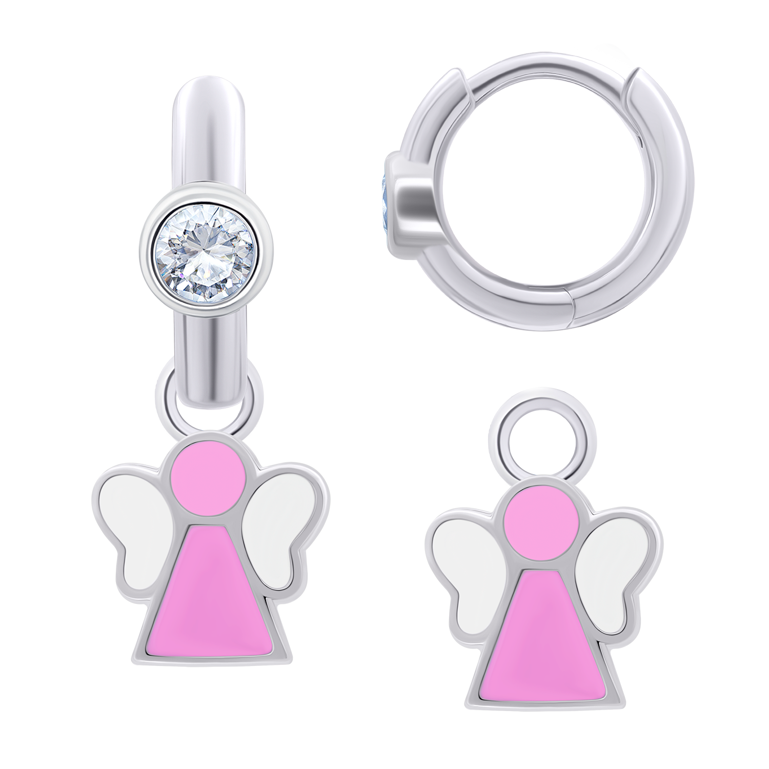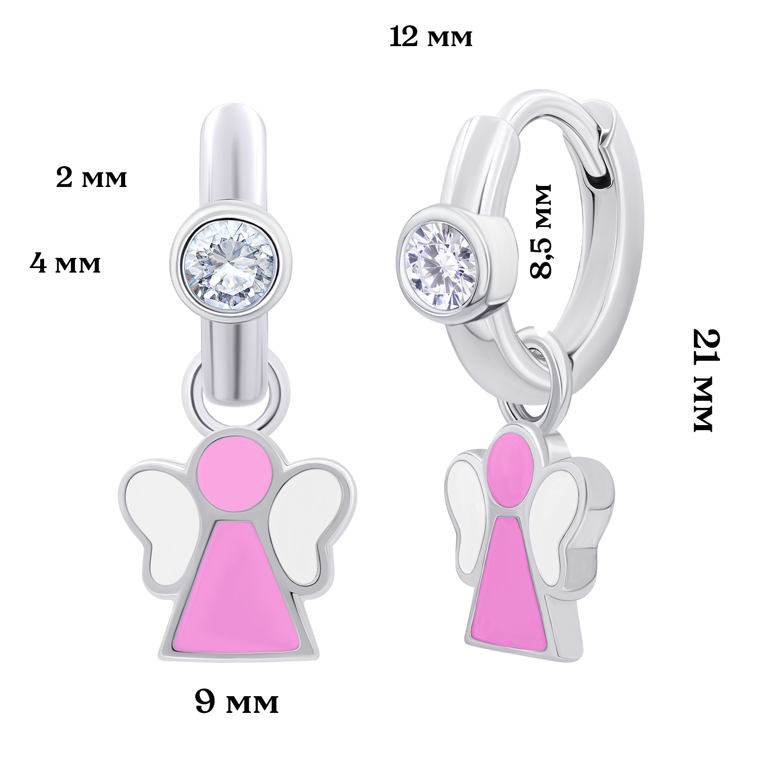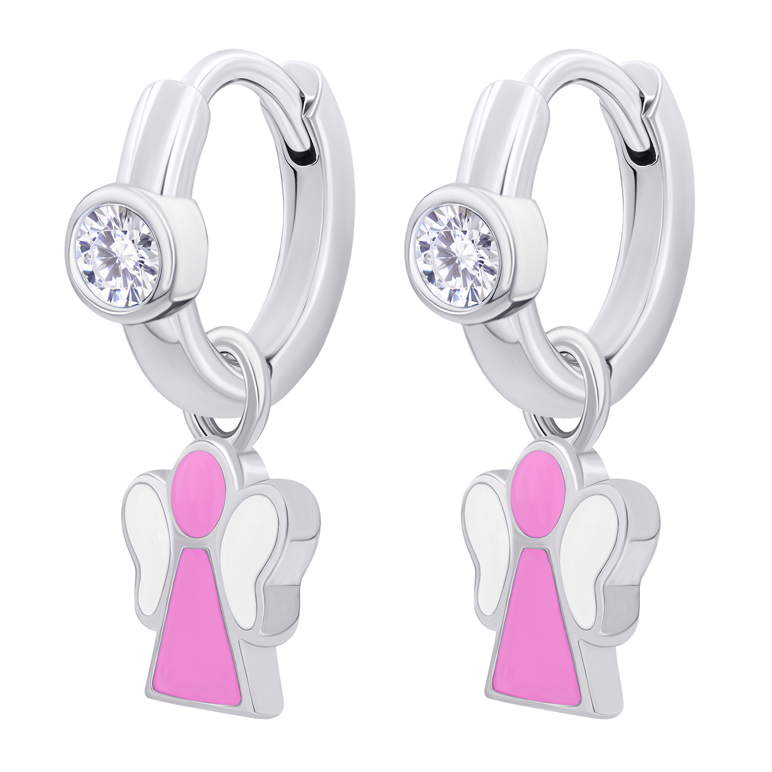 Сережки з підвісами Янголятко рожеве з білими фіанітами із колекції UmaUmi Transformers – красиві, легкі і зручні дитячі сережки. Відмінний ювелірний подарунок на будь-яке свято!