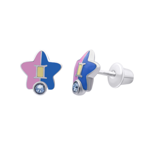 Сережки-зірочки Близнюки з талісманом з блакитними фіанітами із колекції UmaUmi Zodiac – красиві, легкі і зручні дитячі сережки. Відмінний ювелірний подарунок на будь-яке свято!