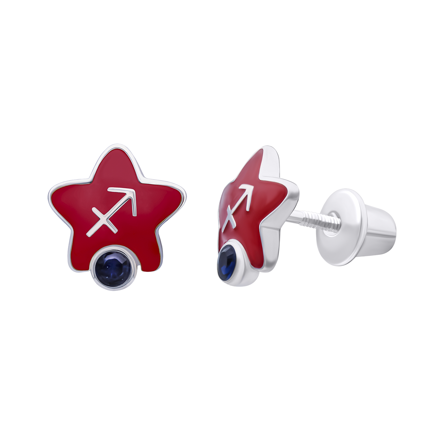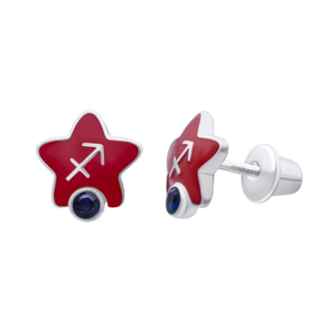 Сережки-зірочки Стрілець з талісманом із синіми фіанітами із колекції UmaUmi Zodiac – красиві, легкі і зручні дитячі сережки. Відмінний ювелірний подарунок на будь-яке свято!