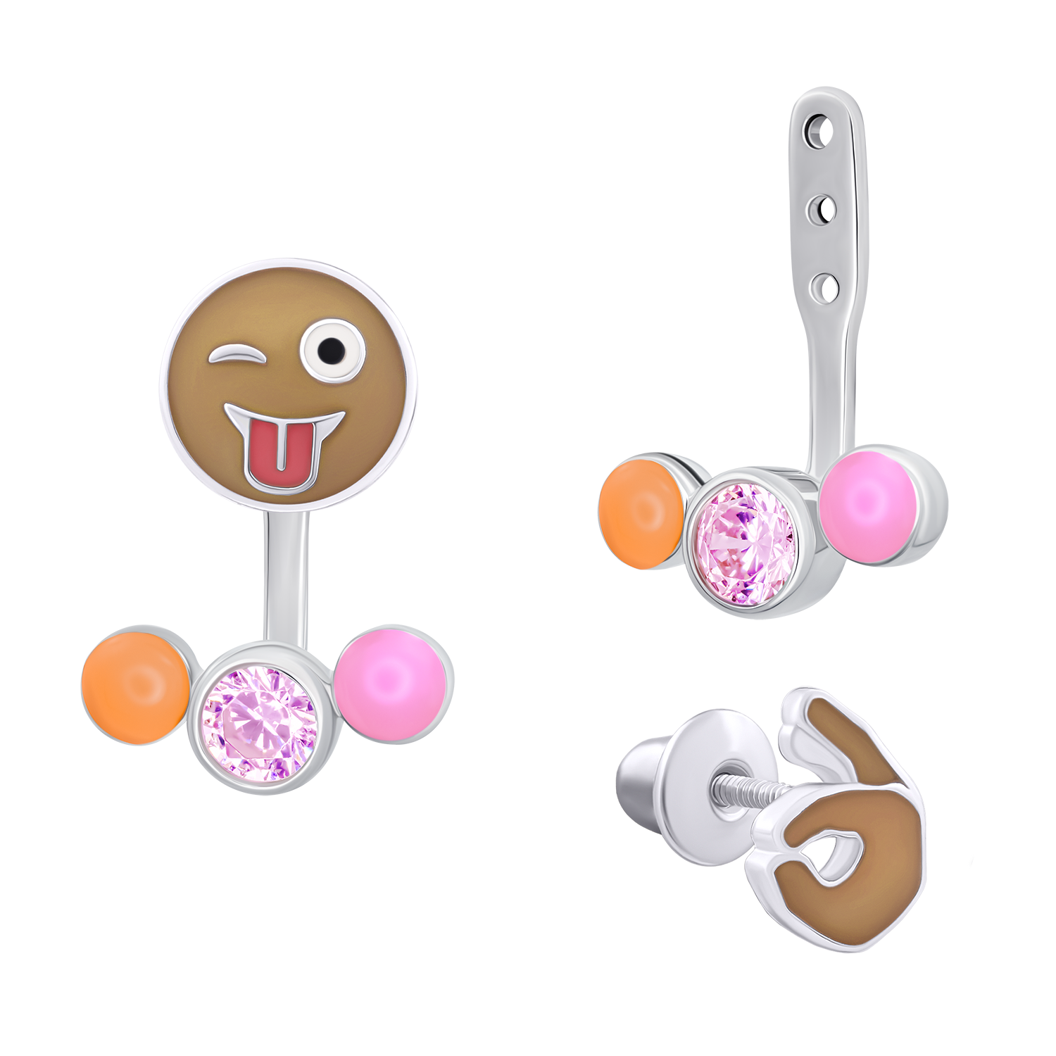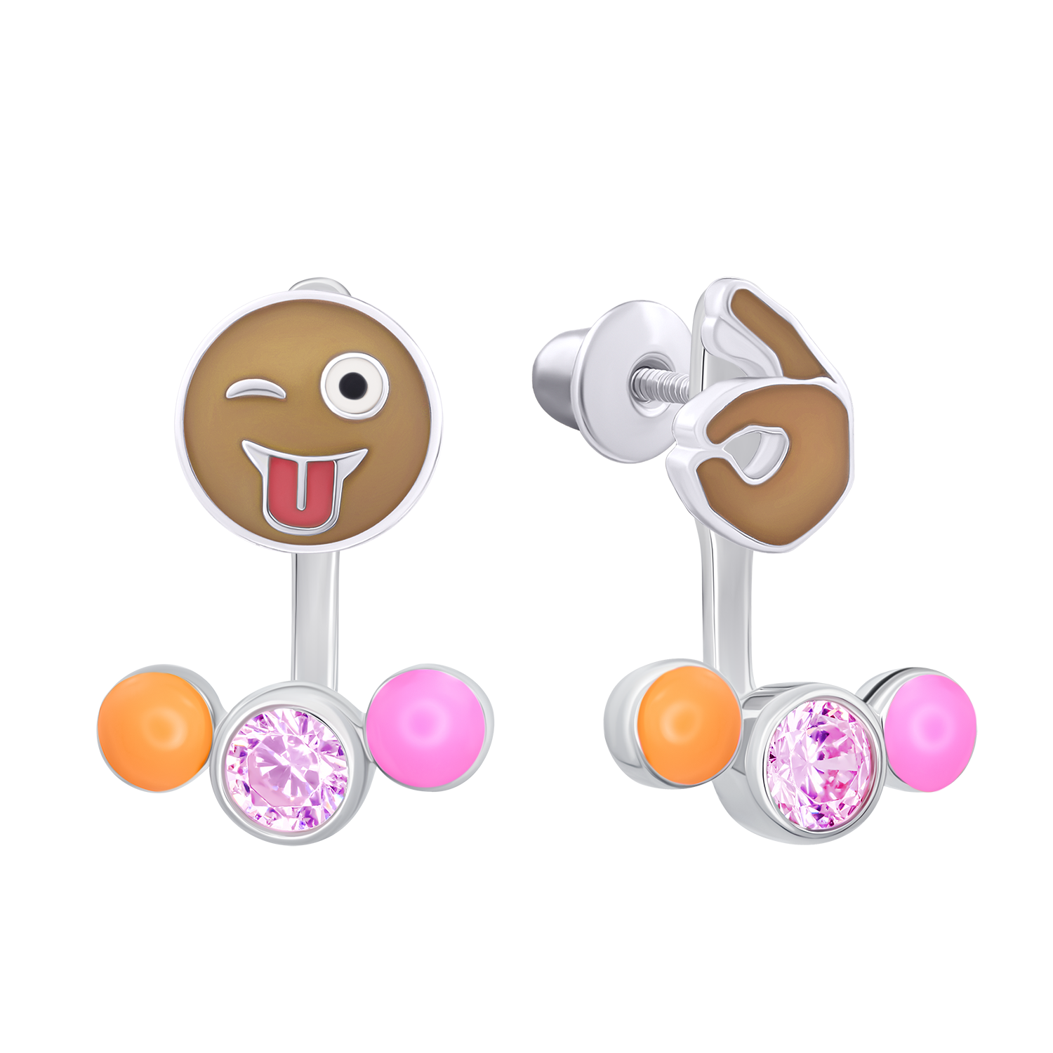 Сережки-джекеты Ты всегда ОК с эмалью и фианитами из коллекции UmaUmi Lumi Smiles – красивые, легкие и удобные детские сережки. Отличный ювелирный подарок на любой праздник!